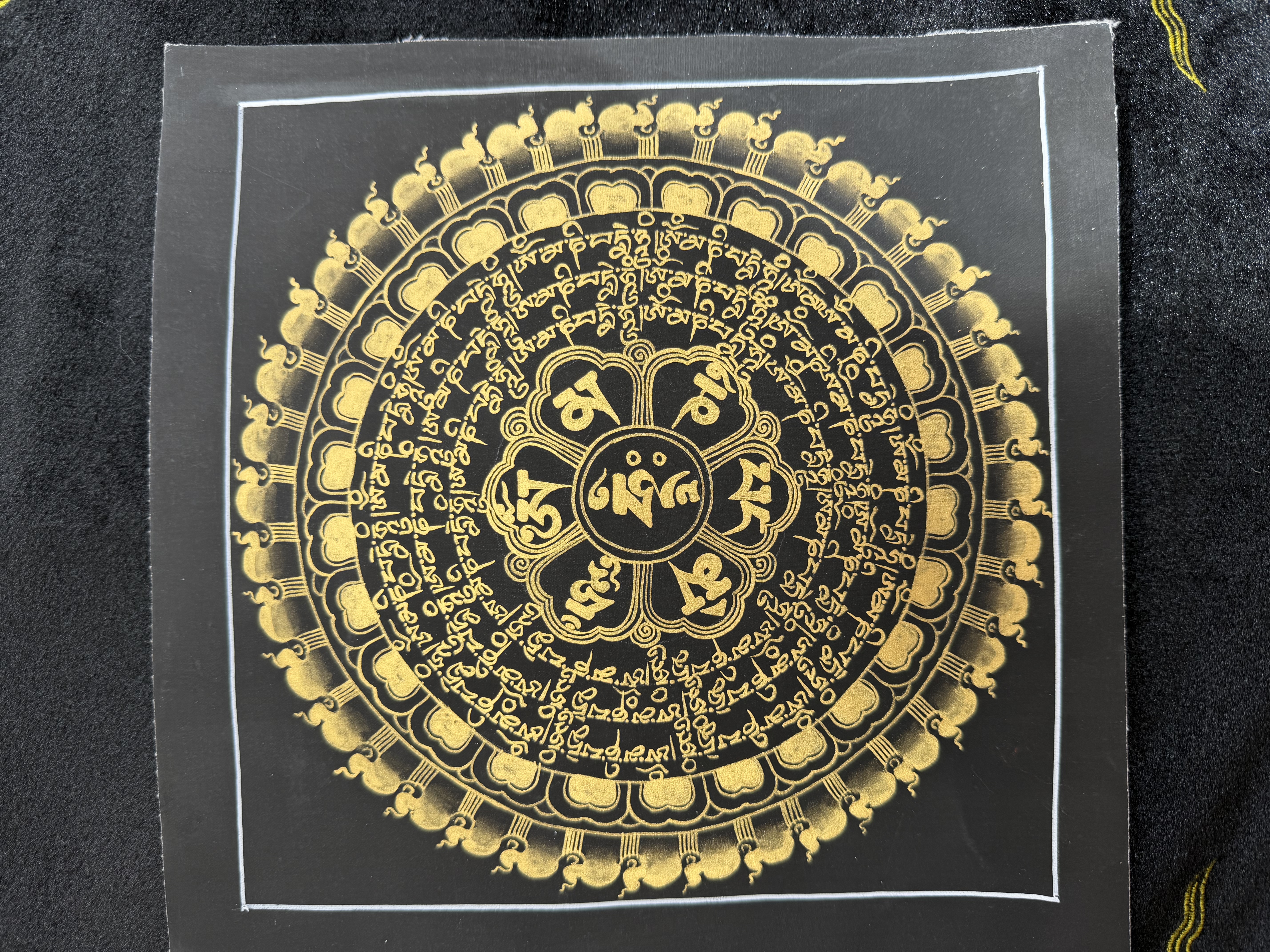 #3 加持尼泊爾手繪唐卡~黑金六字大明咒23.5cm*23.5cm(不包畫框)