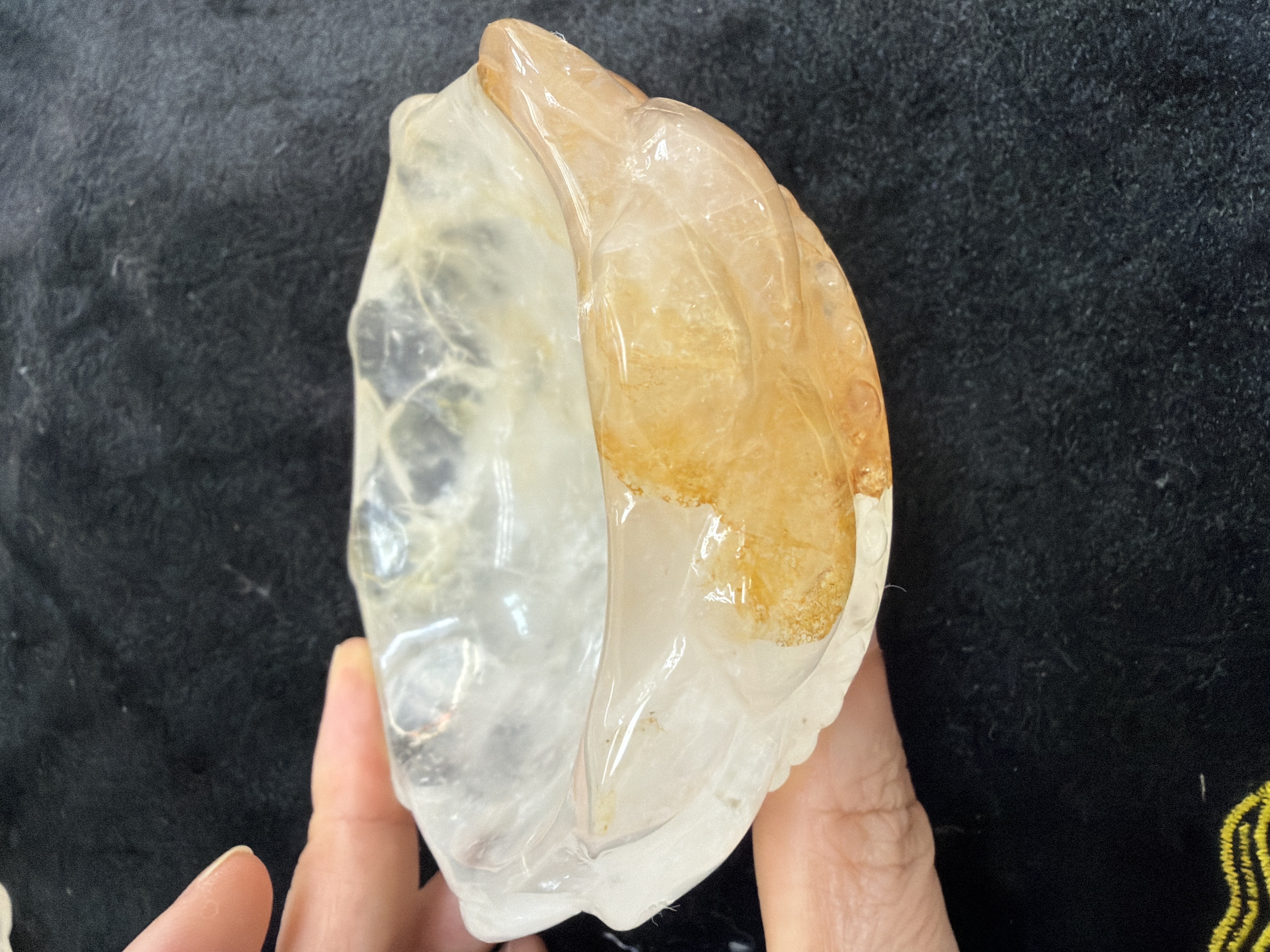 #5 純天然白水晶雕刻蓮花7cm座 (宜淨化手串、供佛)帶天然的紋絡,均屬正常