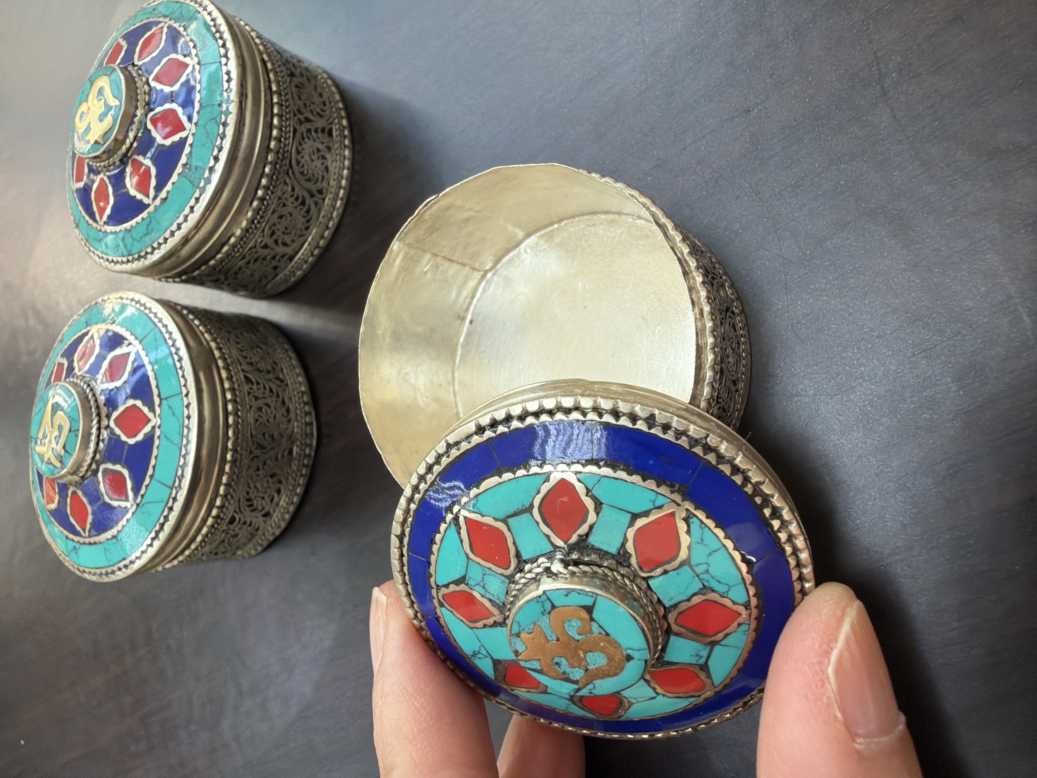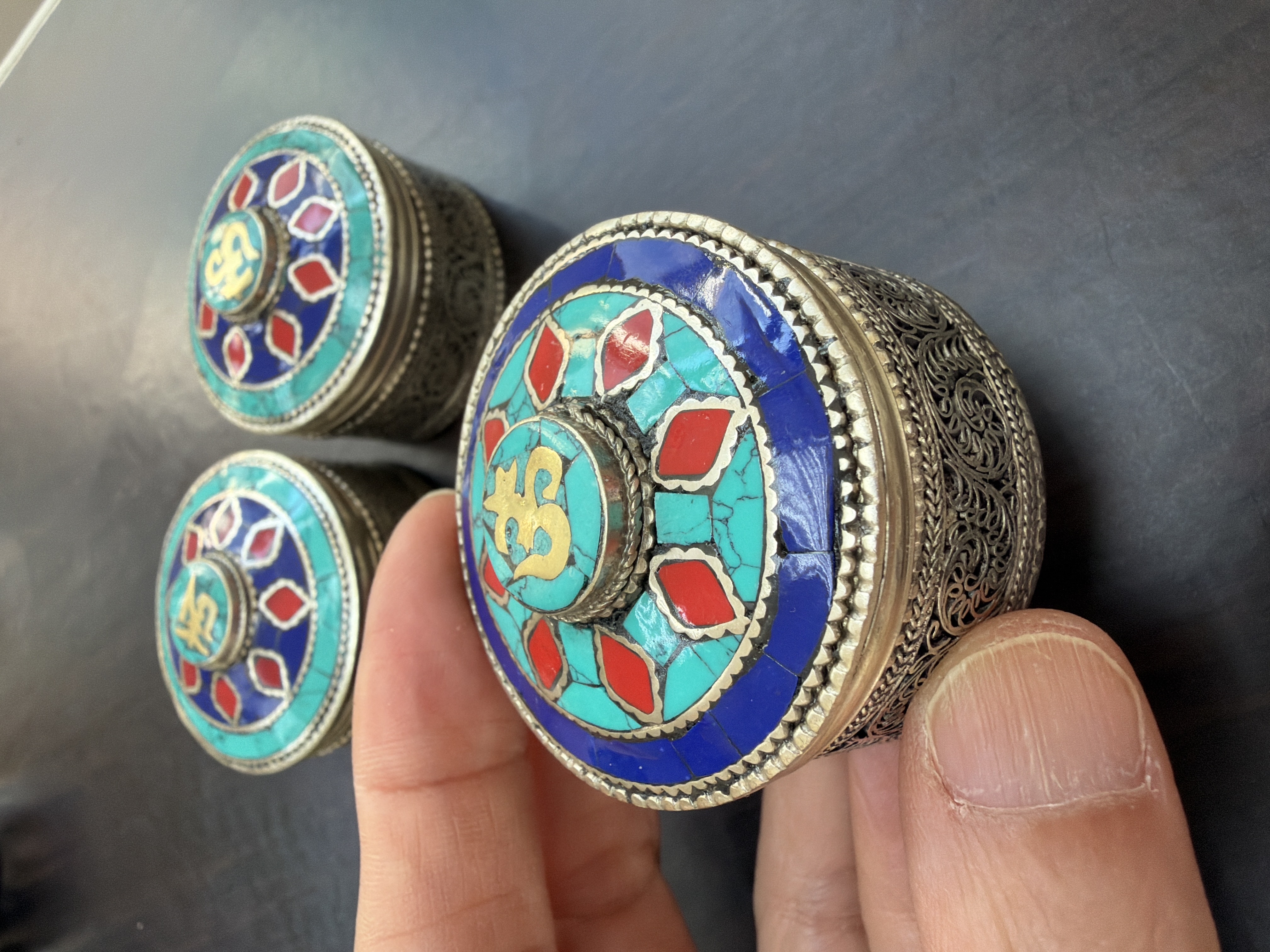 *新 尼泊爾民族風OM 寶石銀盒仔 (綠松石、青金石、紅珊瑚)