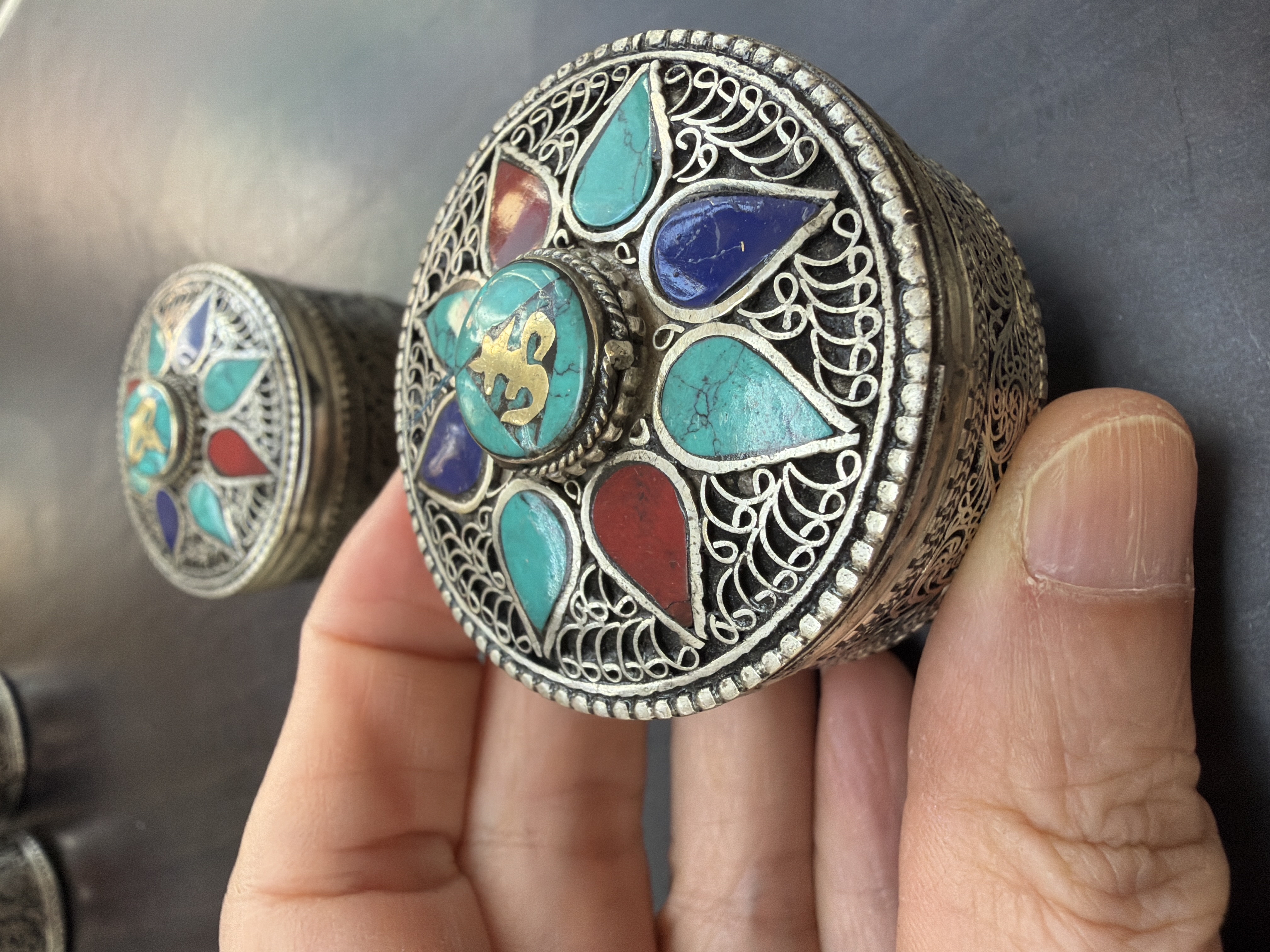 *新 尼泊爾民族OM 星寶石銀盒仔 (綠松石、青金石、紅珊瑚)