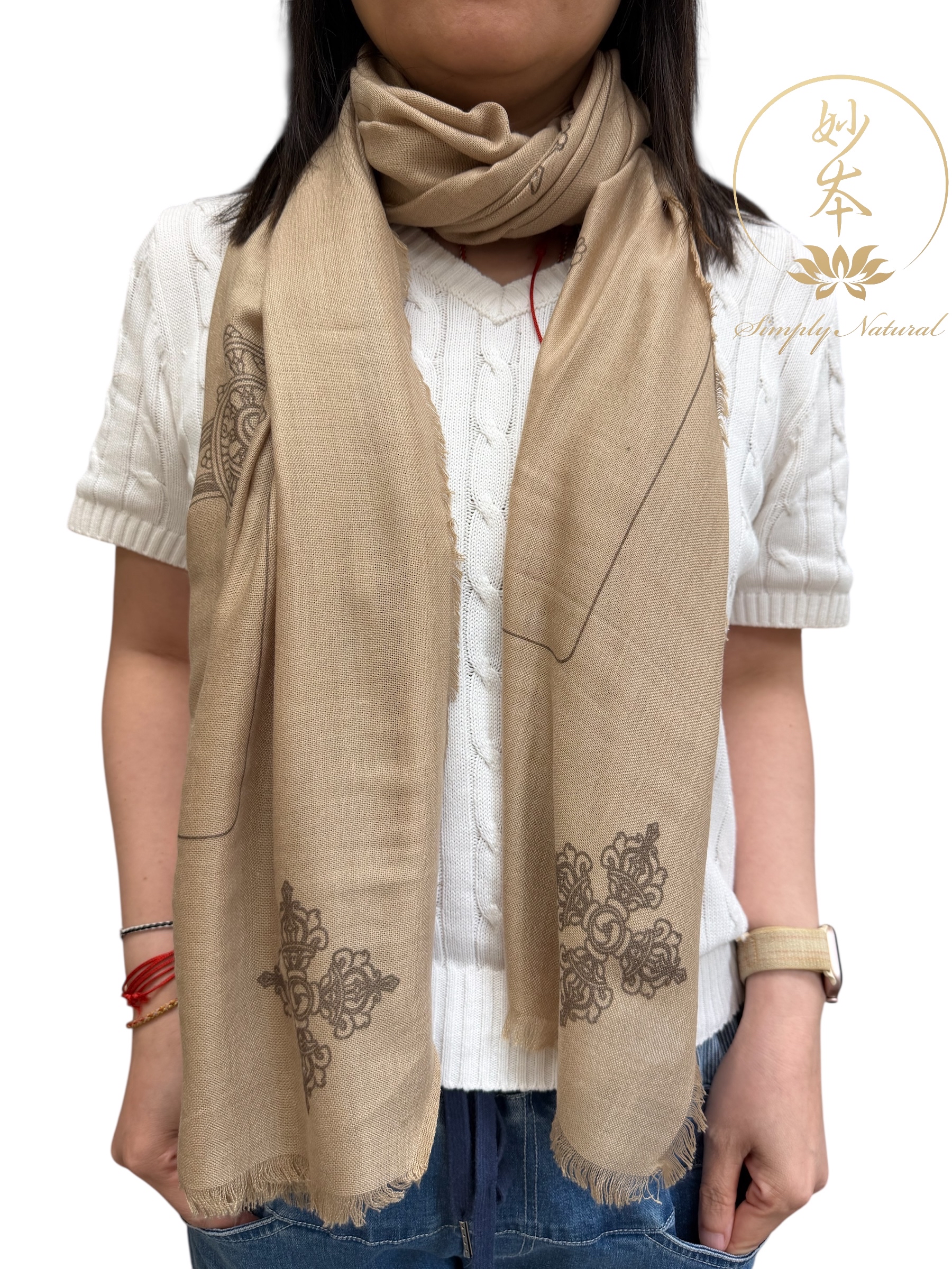 藏傳八吉祥文殊劍圍巾披肩(杏色)金剛杵、文殊劍圖案