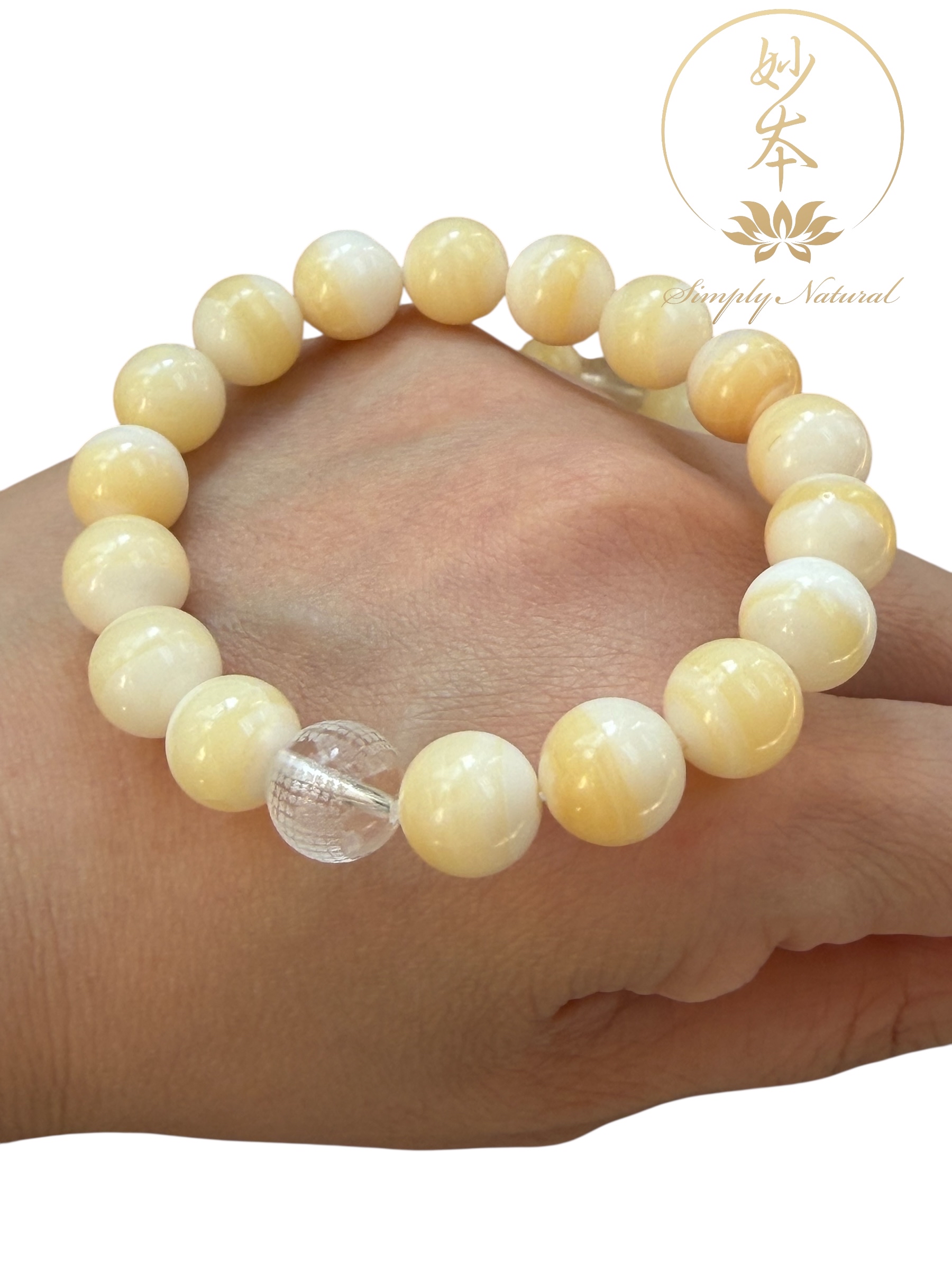 來自海洋的祝福:純天然10mm 一線天硨磲 配心經白水晶珠 硨磲,被稱為「貝殼之王」,象徵著祥瑞與平安,而一線天硨磲更是稀有珍貴,有著獨特的天眼紋路,據說能避邪化煞,帶來好運。搭配上刻著心經的白水晶珠,更能淨化心靈,帶來內心的平靜與祥和。