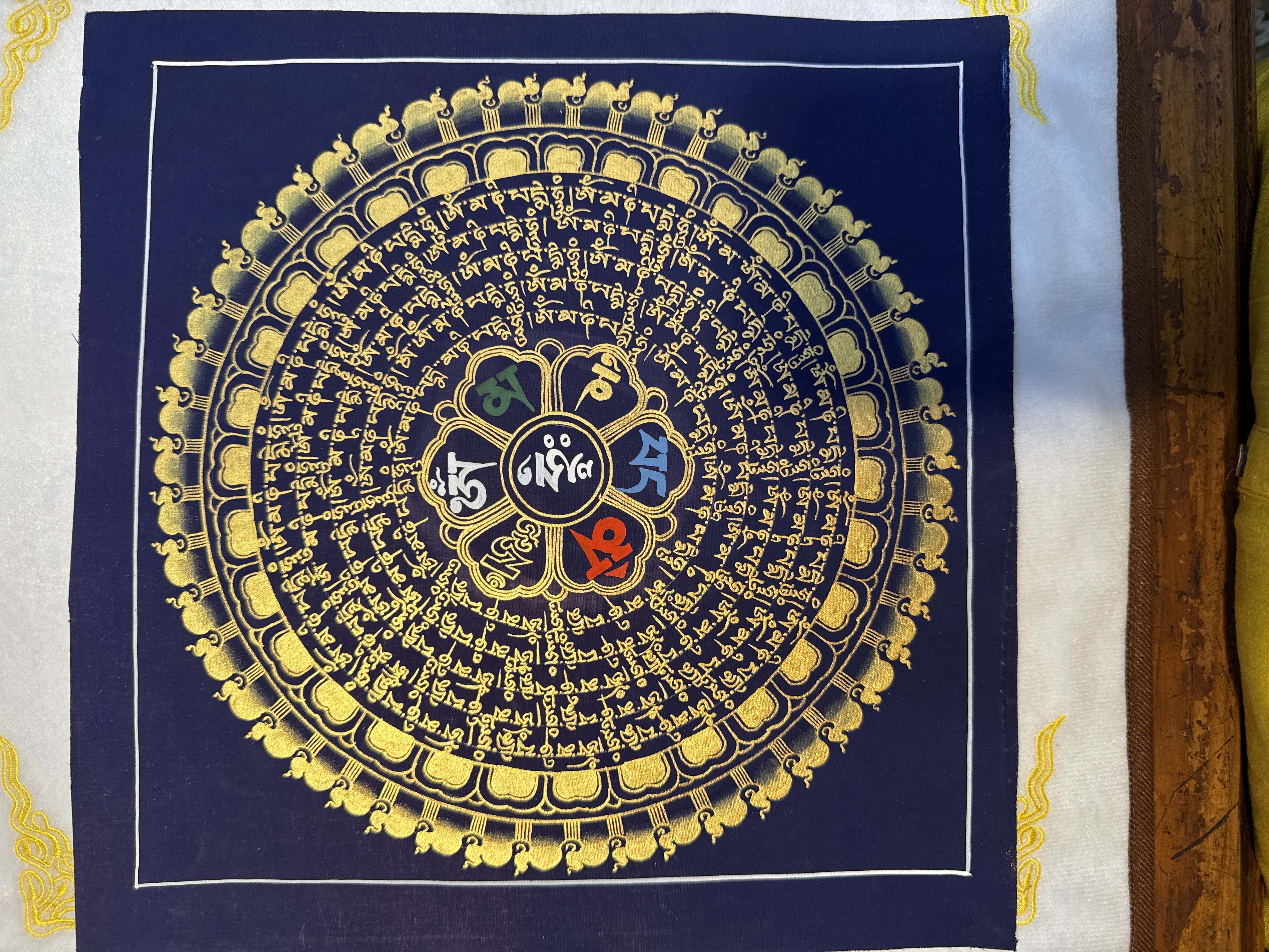 #5 尼泊爾直播~ 藍金六字大明咒唐卡真筆 28.8cm*28.5cm