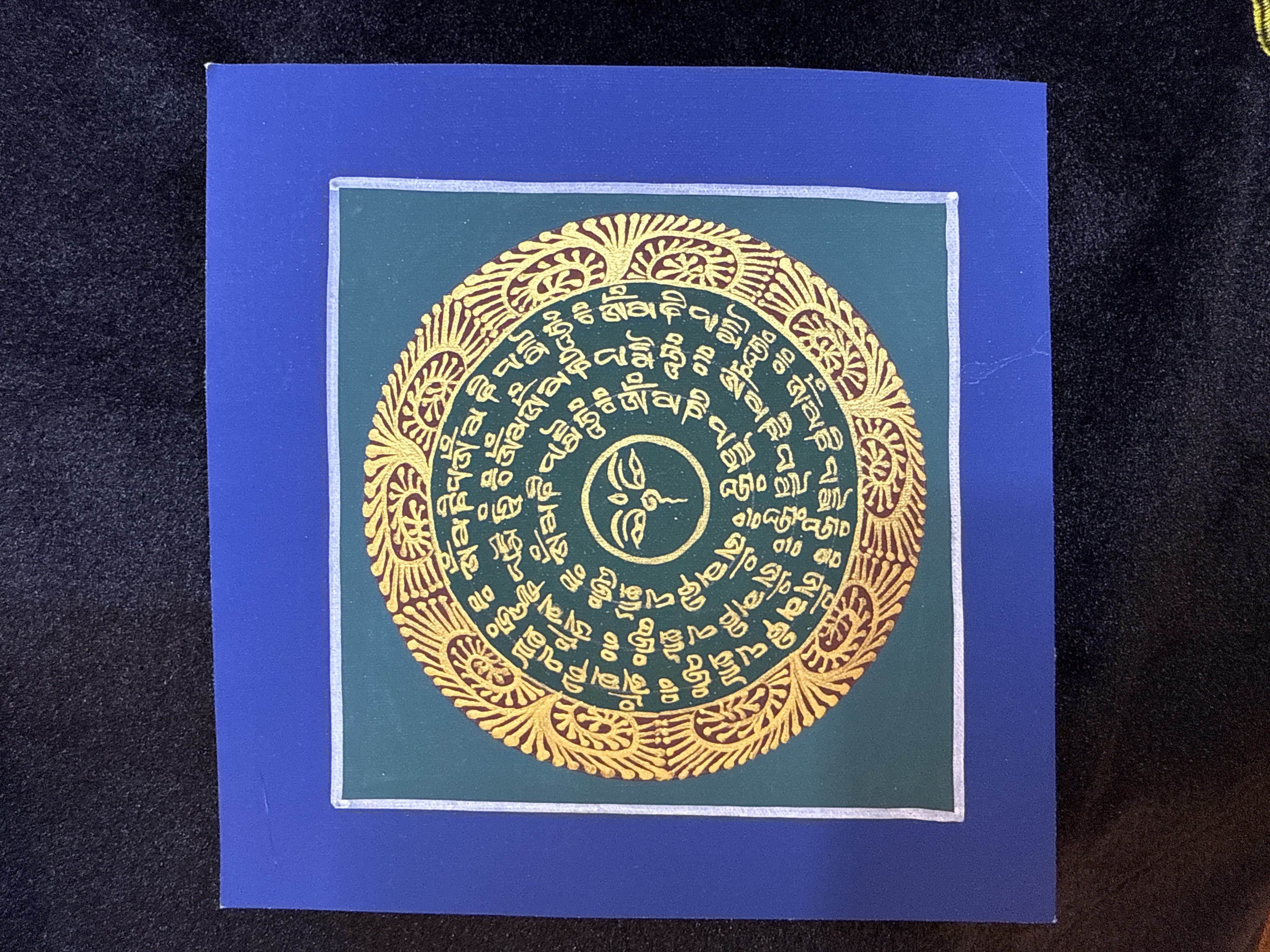 8)尼泊爾直播~ 藍綠六字大明咒佛眼唐卡真筆 13cm*13cm