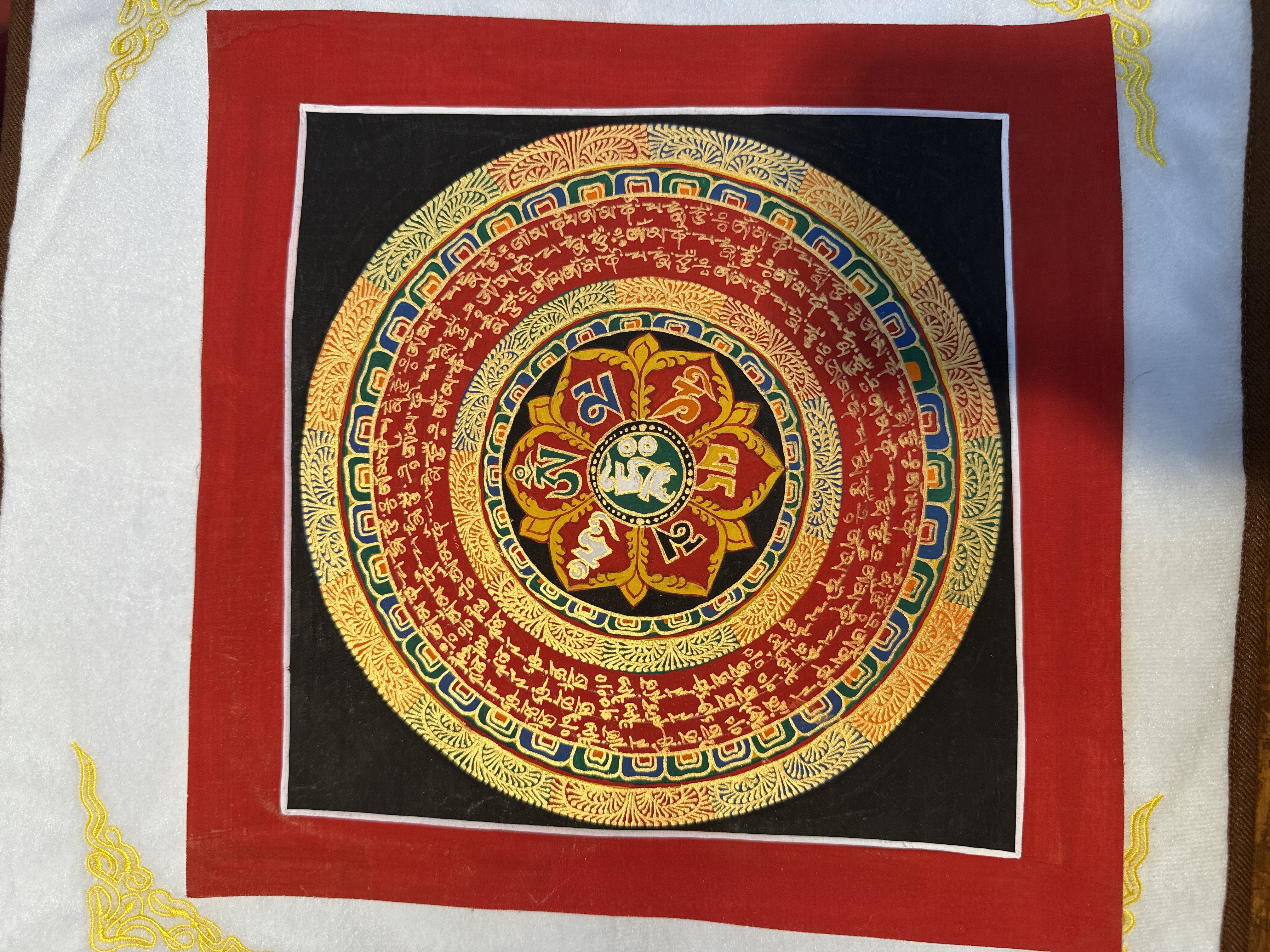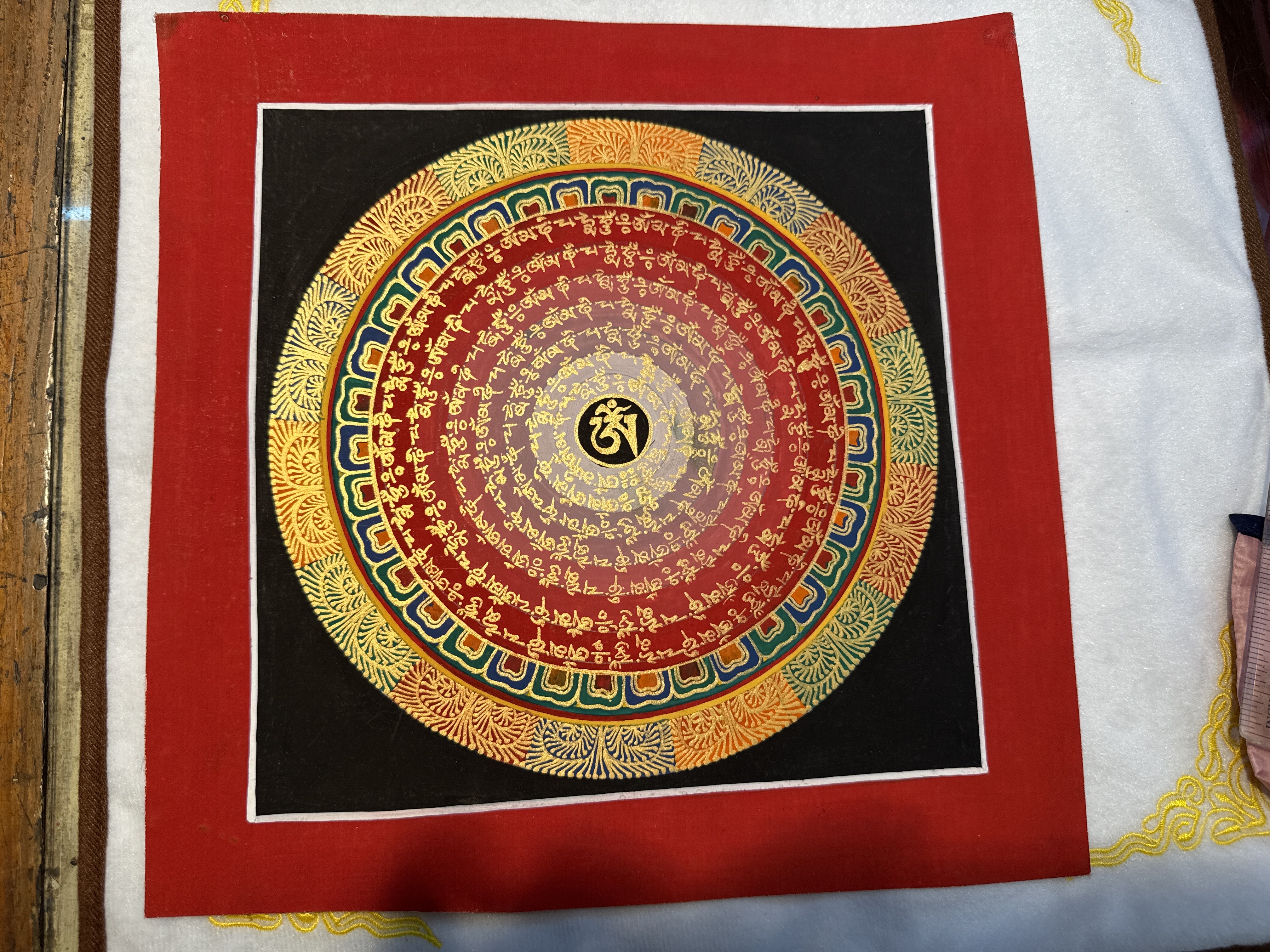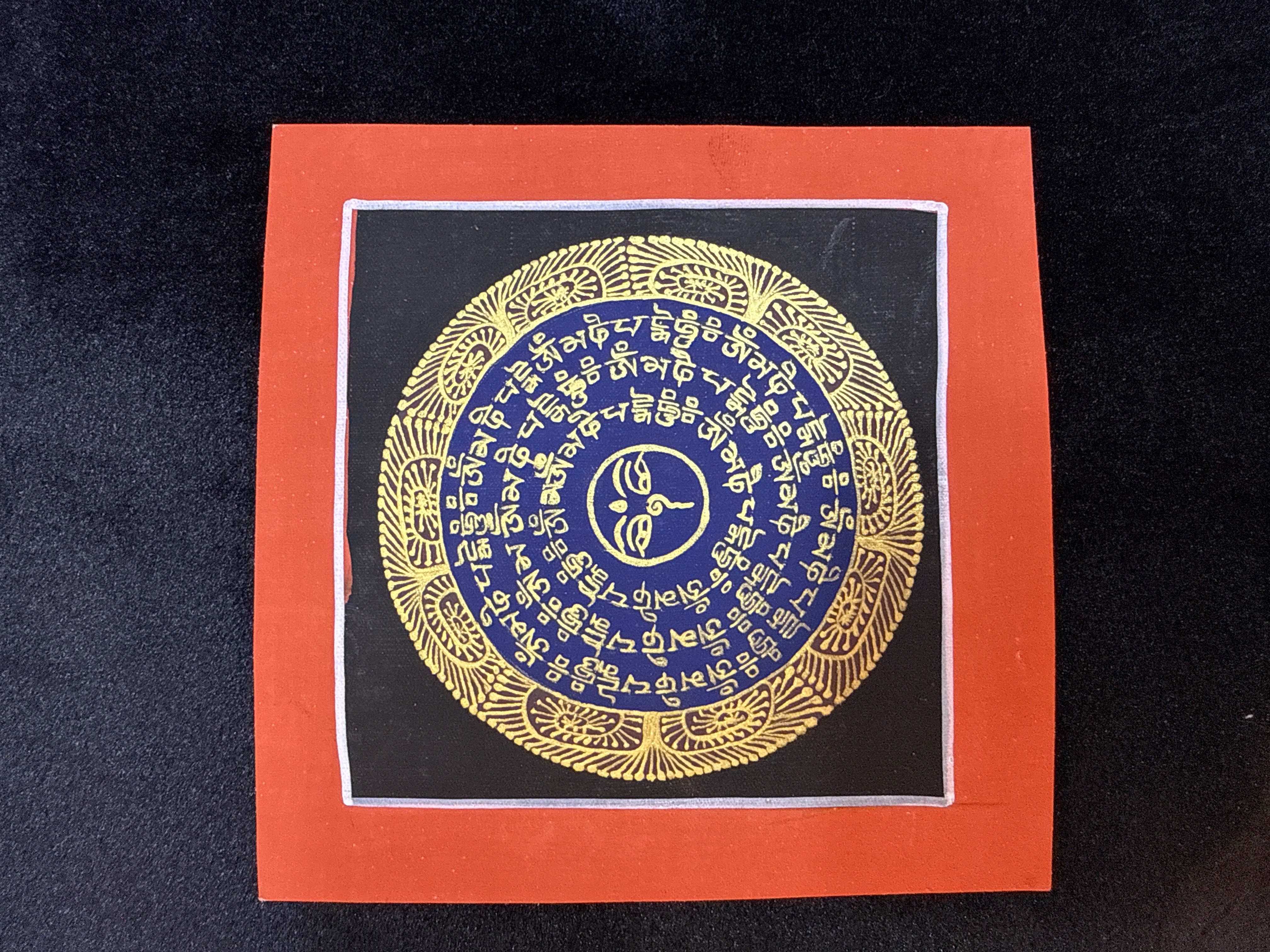 7)尼泊爾直播~ 紅金藍六字大明咒佛眼唐卡真筆 13cm*13cm