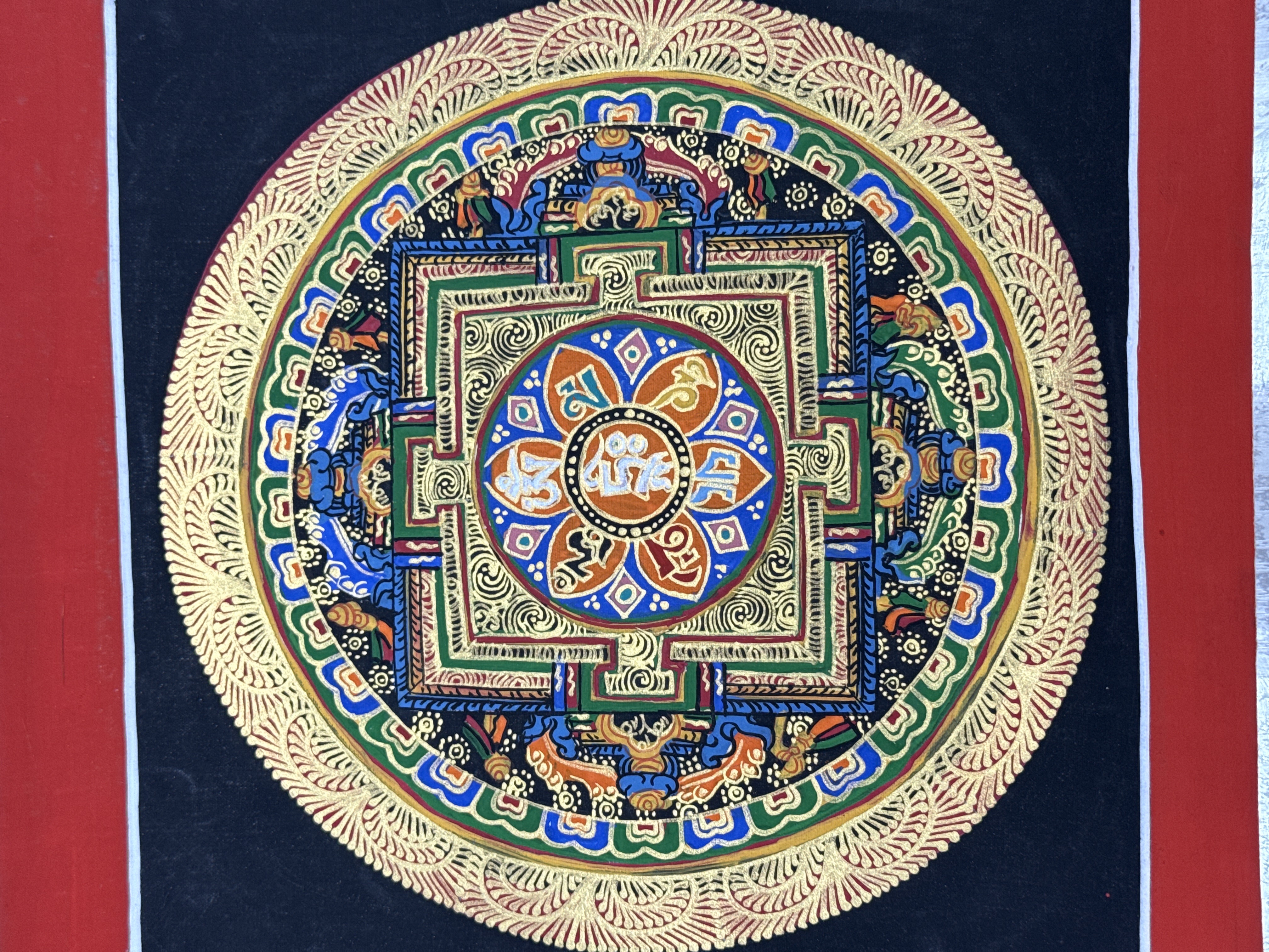 #10 加持尼泊爾手繪唐卡~壇城六字大明咒橙色(紅)27.5cm