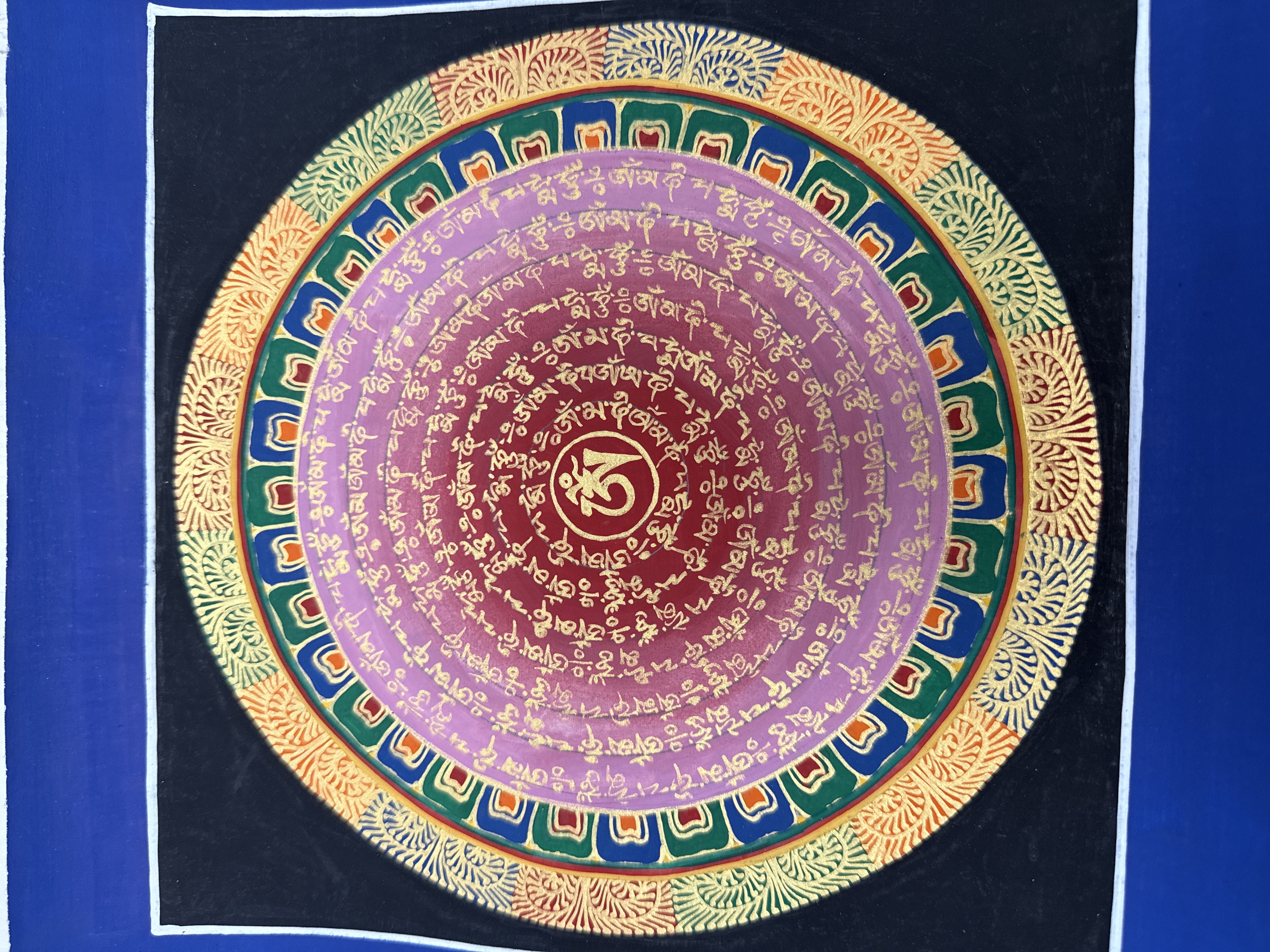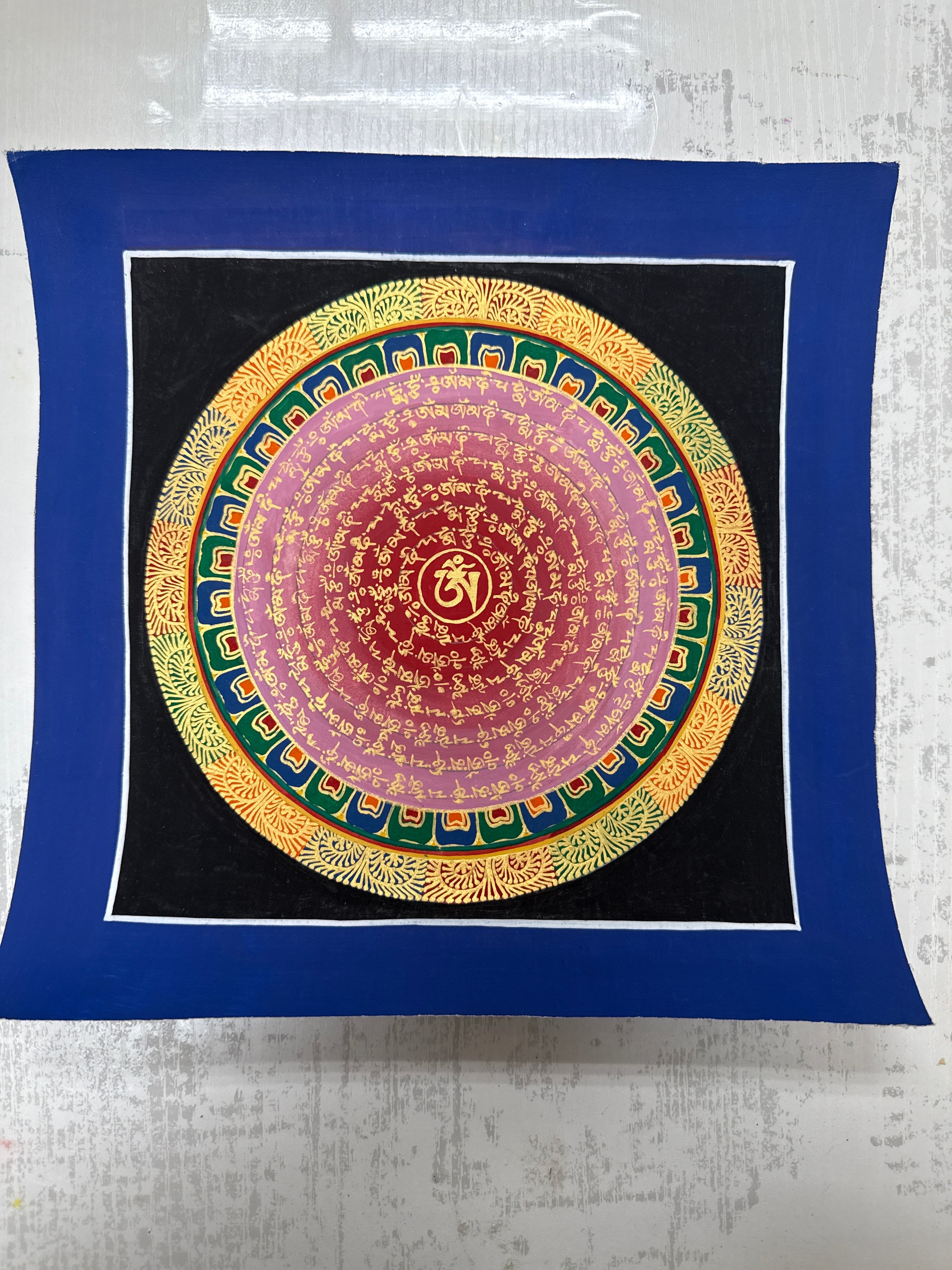 #14 加持尼泊爾手繪唐卡~OM 六字大明咒(藍2)28cm