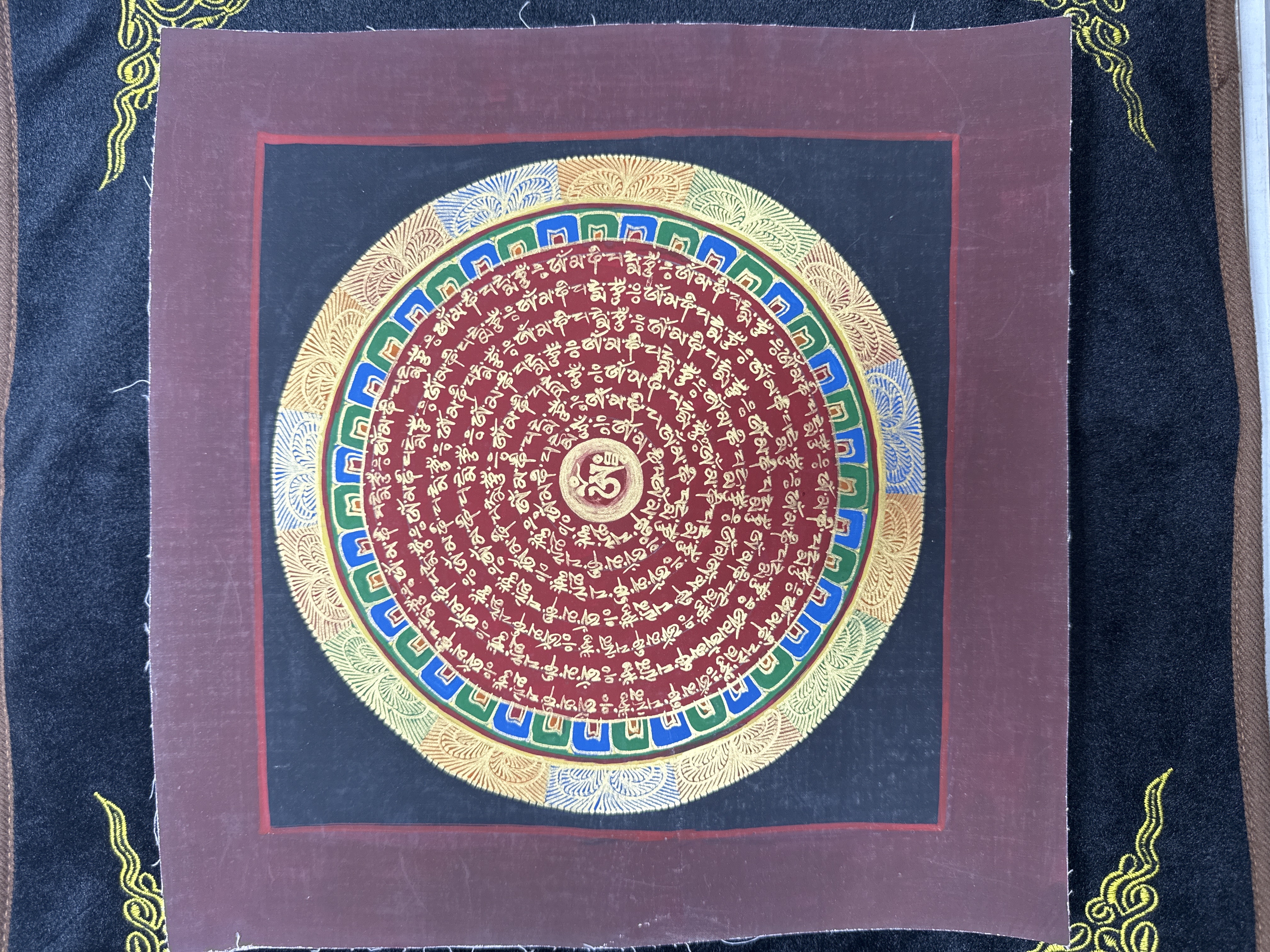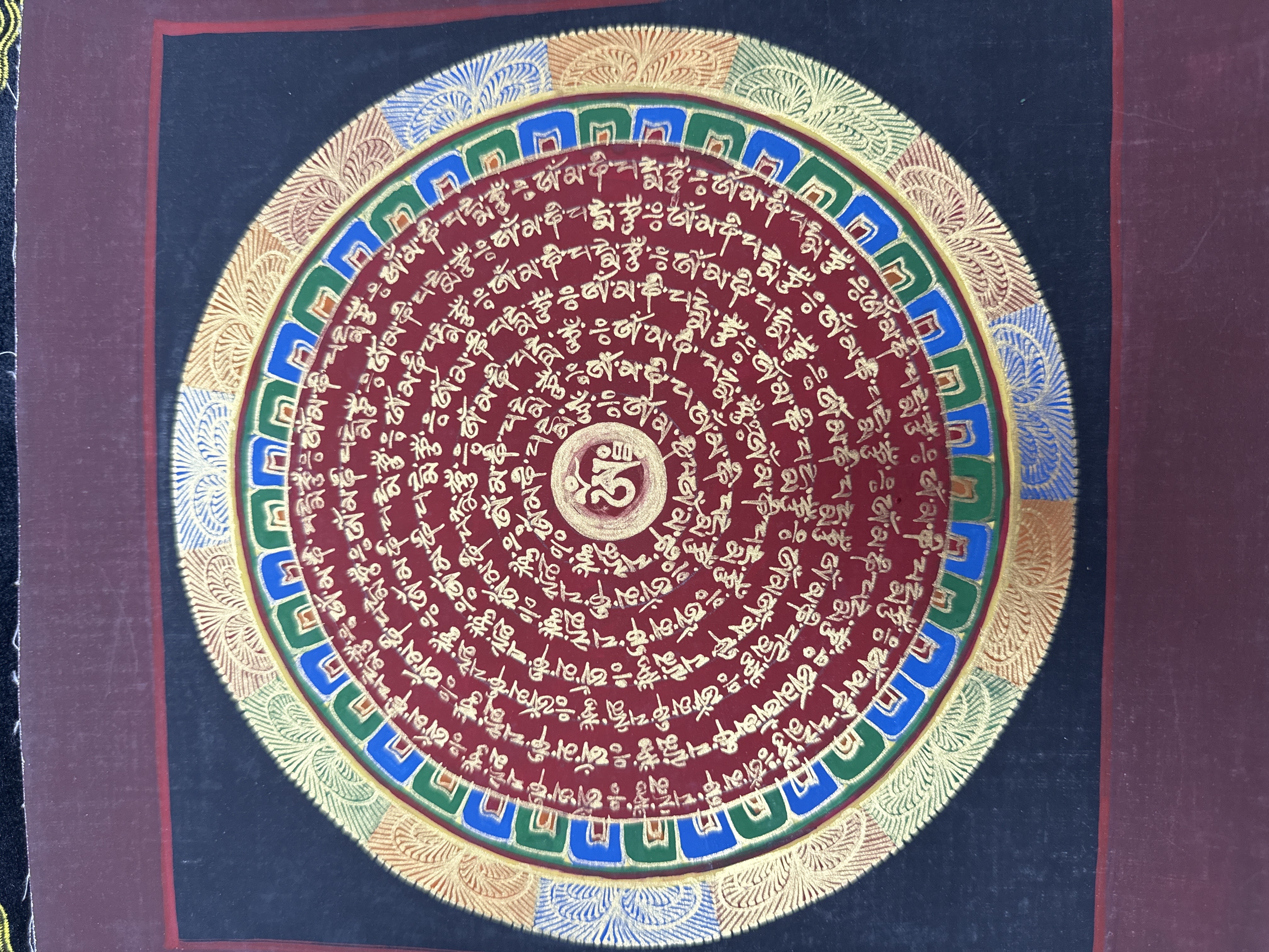 #18 加持尼泊爾手繪唐卡~OM 六字大明咒(暗紅)28cm