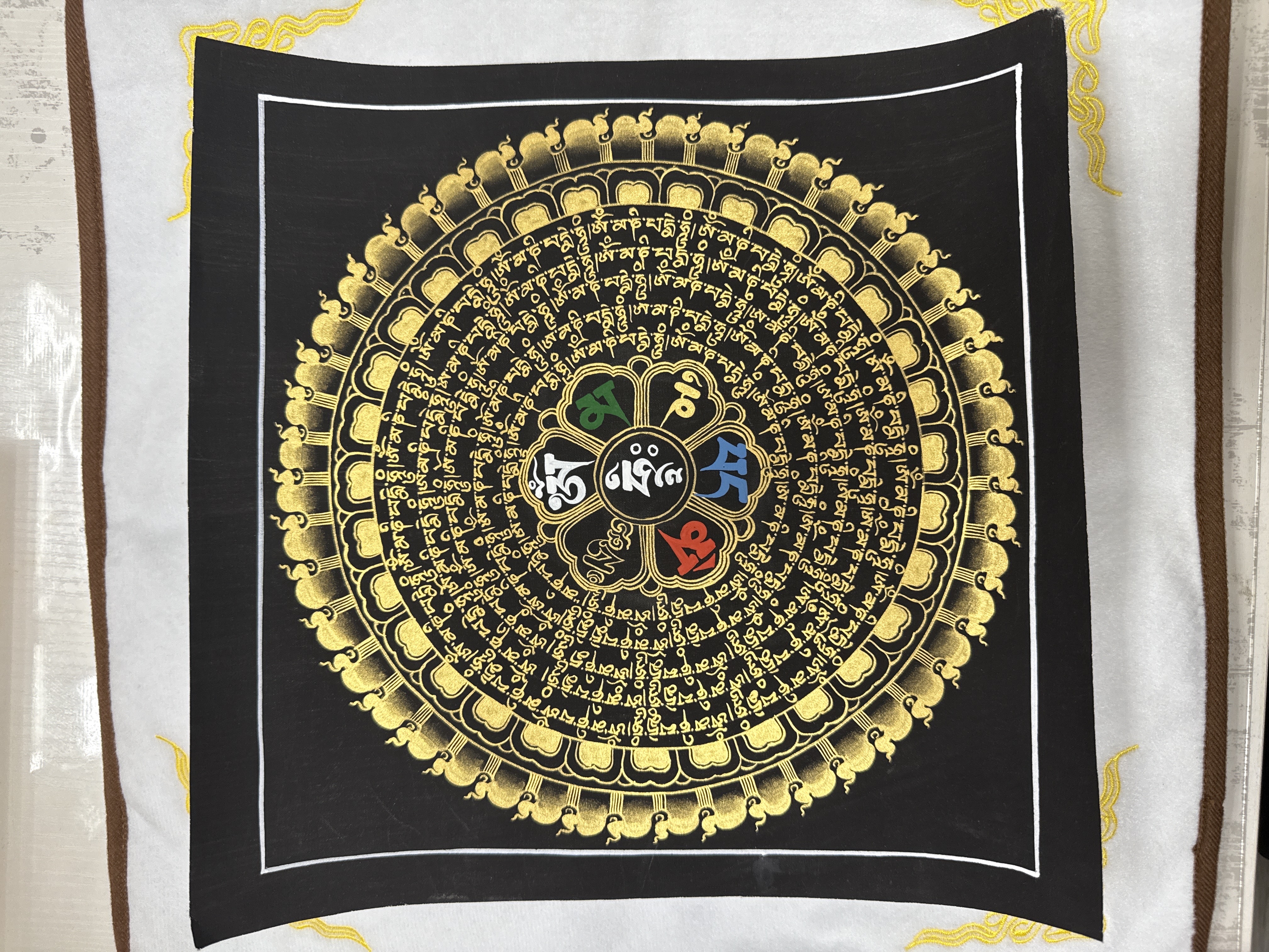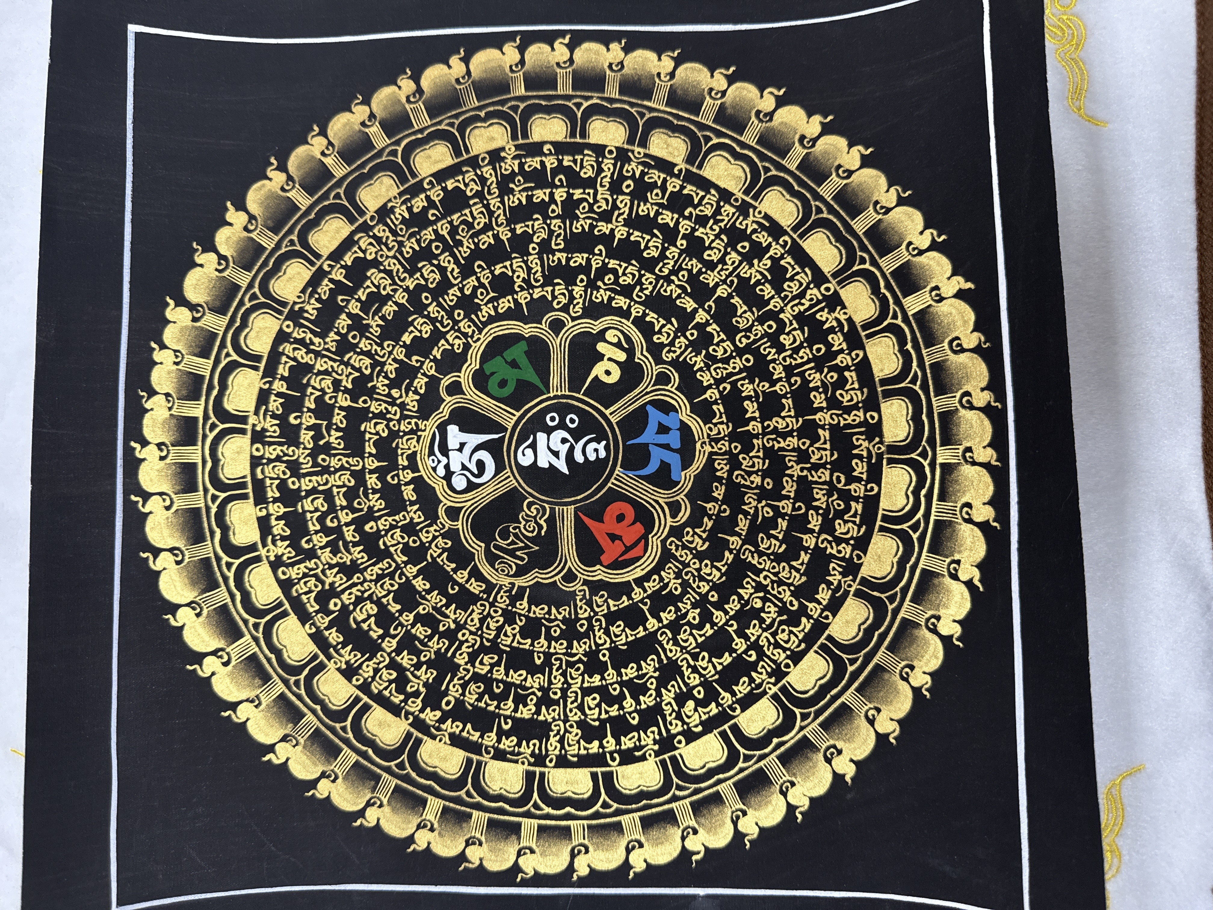 #20 加持尼泊爾手繪唐卡~黑金彩六字大明咒28cm