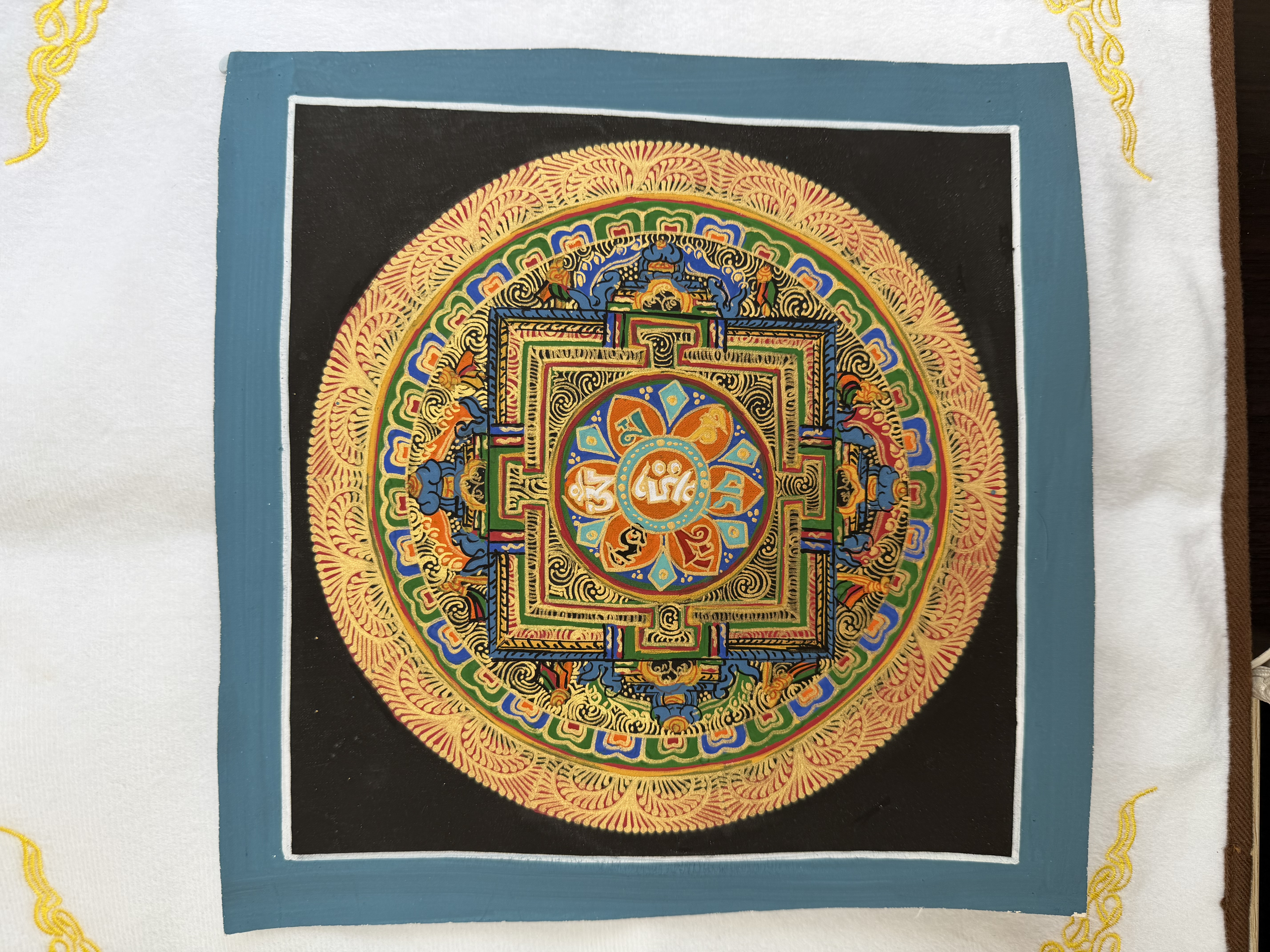 #6 加持尼泊爾手繪唐卡~壇城六字大明咒(藍)24cm*24cm
