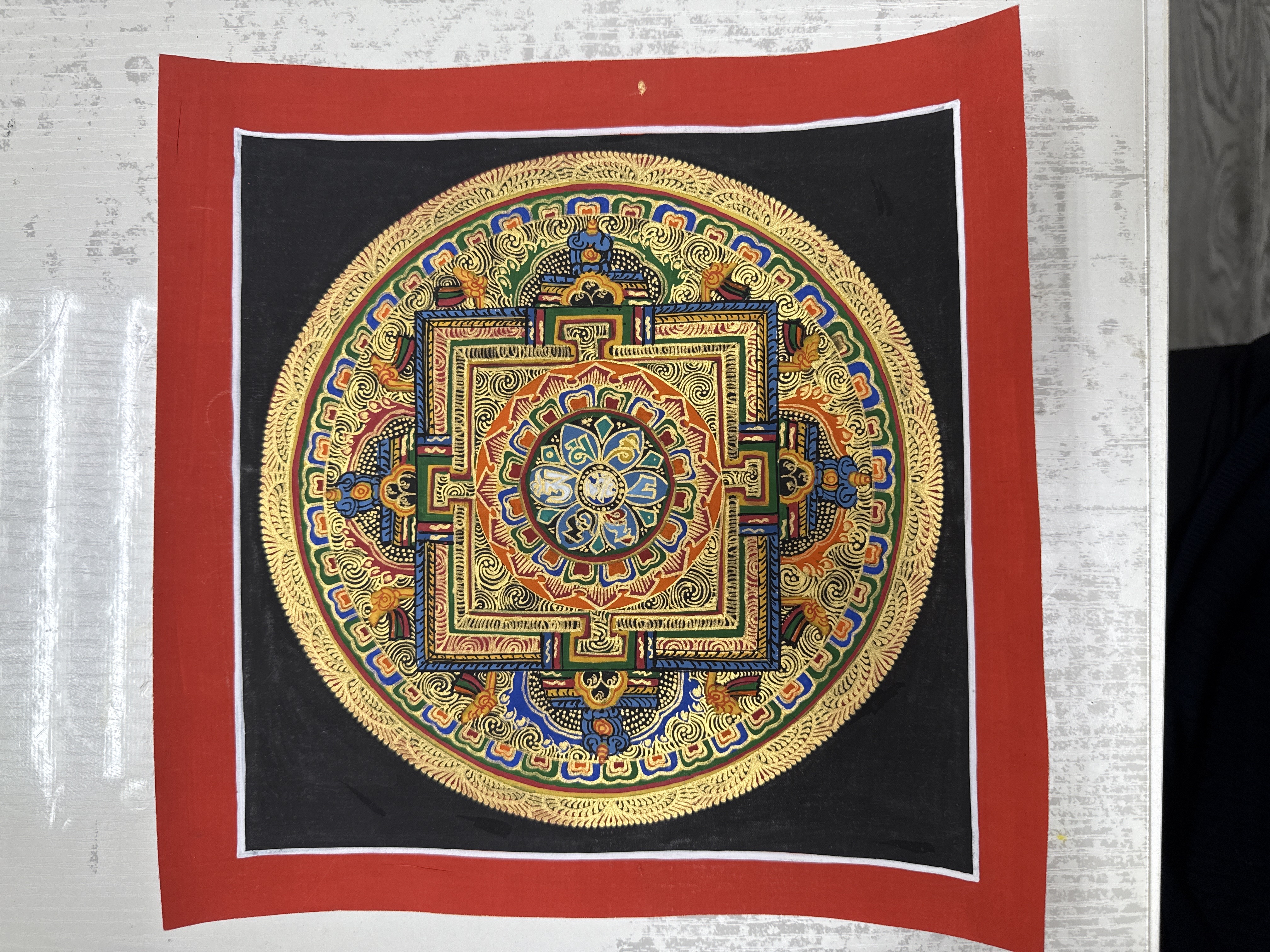 【唐卡功效】1️⃣鎮宅辟邪2️⃣改變磁場3️⃣保佑平安4️⃣家庭幸福 開啟心咒中蘊含的功德能量,在家中形成無形的結界,掃蕩一切邪惡之氣,助人提升 靈性,達到穩定身心靈的作用。 🌹經由尼泊爾滿願塔喇嘛開光加持🙏🙏🙏 🌈🌈🌈🌈🌈🌈🌈🌈🌈🌈🌈🌈🌈🌈🌈 想為空間(家、辦公室)增添一點靈性氛圍,又不想太過嚴肅嗎?看看我們這款從尼泊爾帶回來的加持手繪唐卡~壇城 (23cm*23cm) 吧! 這不是什麼大量生產的印刷品,而是由尼泊爾當地畫師精心手繪而成。每一筆每一畫都充滿了能量和祝福,透過精細的線條和鮮豔的色彩,將壇城的奧妙完美呈現。壇城在佛教中代表著宇宙和精神世界的縮影,掛在家中可以帶來平和、寧靜的氛圍,幫助我們靜心冥想,找到內心的平靜。 這幅唐卡尺寸適中,23cm*23cm的大小,不管是放在書桌上、掛在牆上,或是作為靈修空間的裝飾,都非常適合。而且,它已經過加持,更增添了它的靈性價值。如果你對藏傳佛教文化、藝術或靈性追求感興趣,這絕對是一個很棒的入門選擇。 想像一下,在忙碌了一天之後,回到家看到這幅美麗的壇城,感受到它散發出的寧靜能量,是不是立刻就覺得放鬆了許多呢?