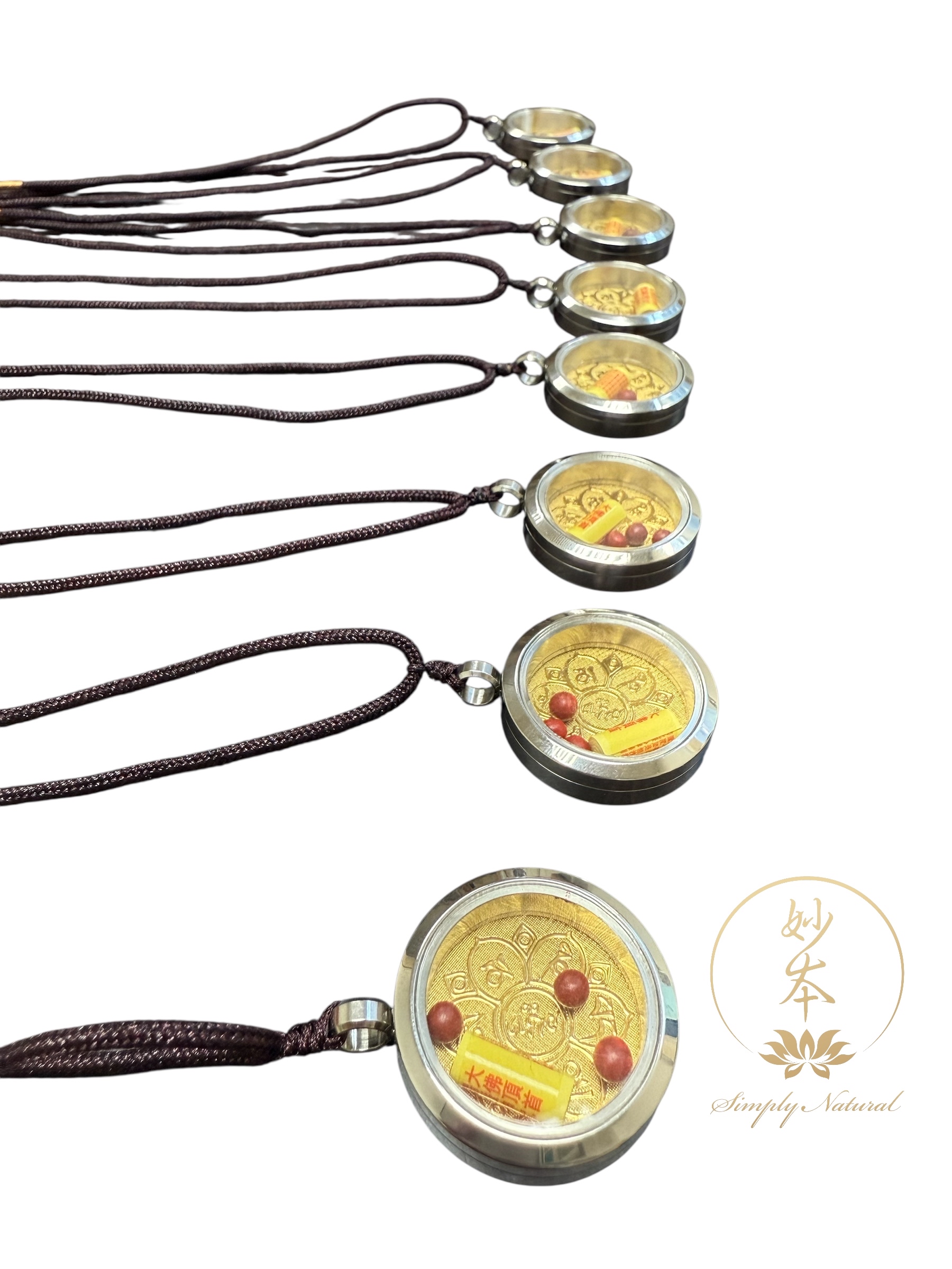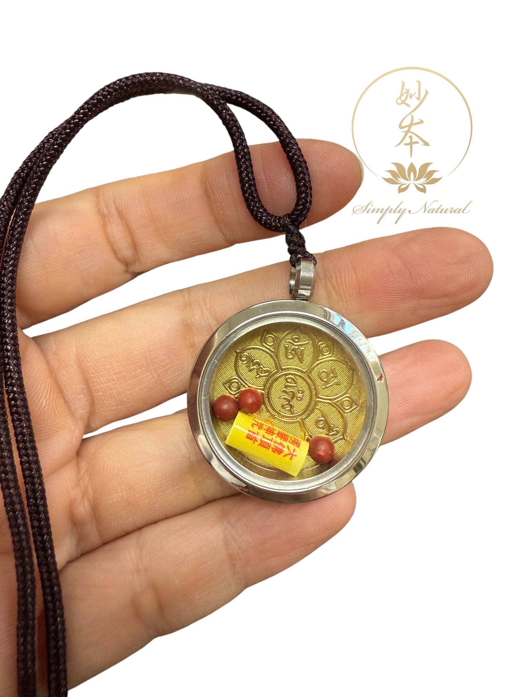 楞嚴咒+六字大明咒嘎嗚吊咀(內有三粒紅觀音法藥+楞嚴咒)背:十字金剛杵