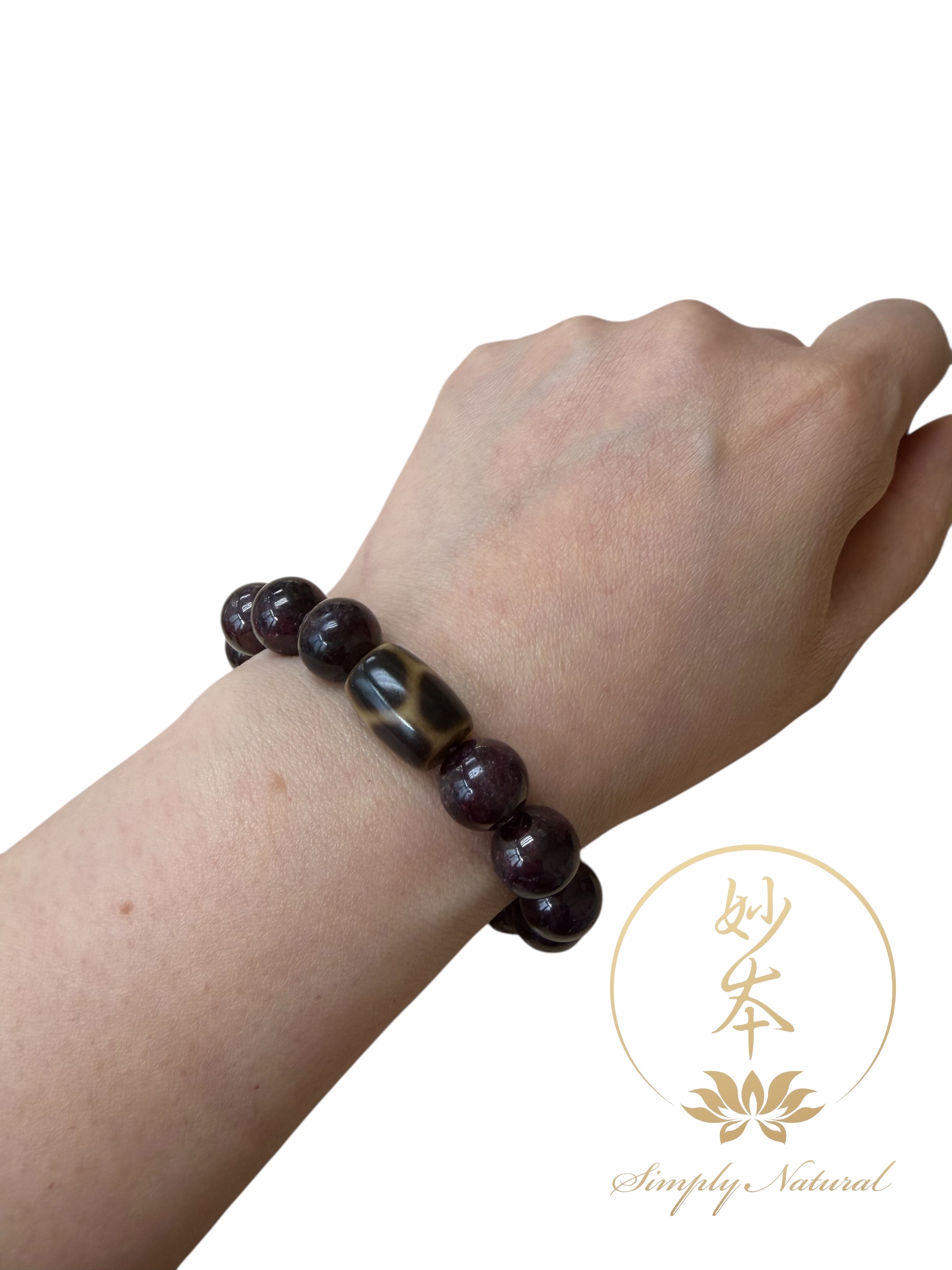 11mm 石榴石手串 配:龜甲天珠(已加持) 手圍14cm