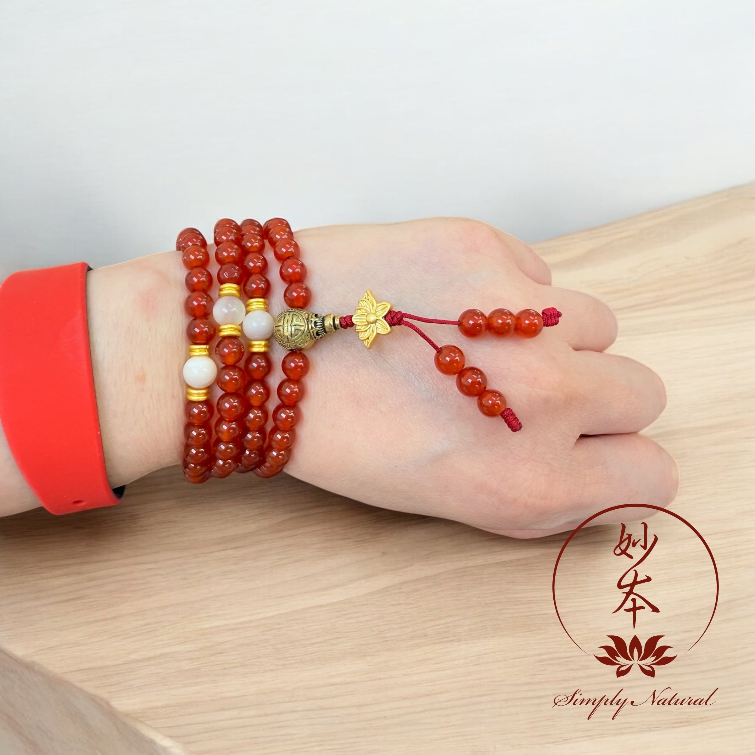 2025年必戴大紅色 6mm 108粒紅瑪瑙念珠 配:金蓮花