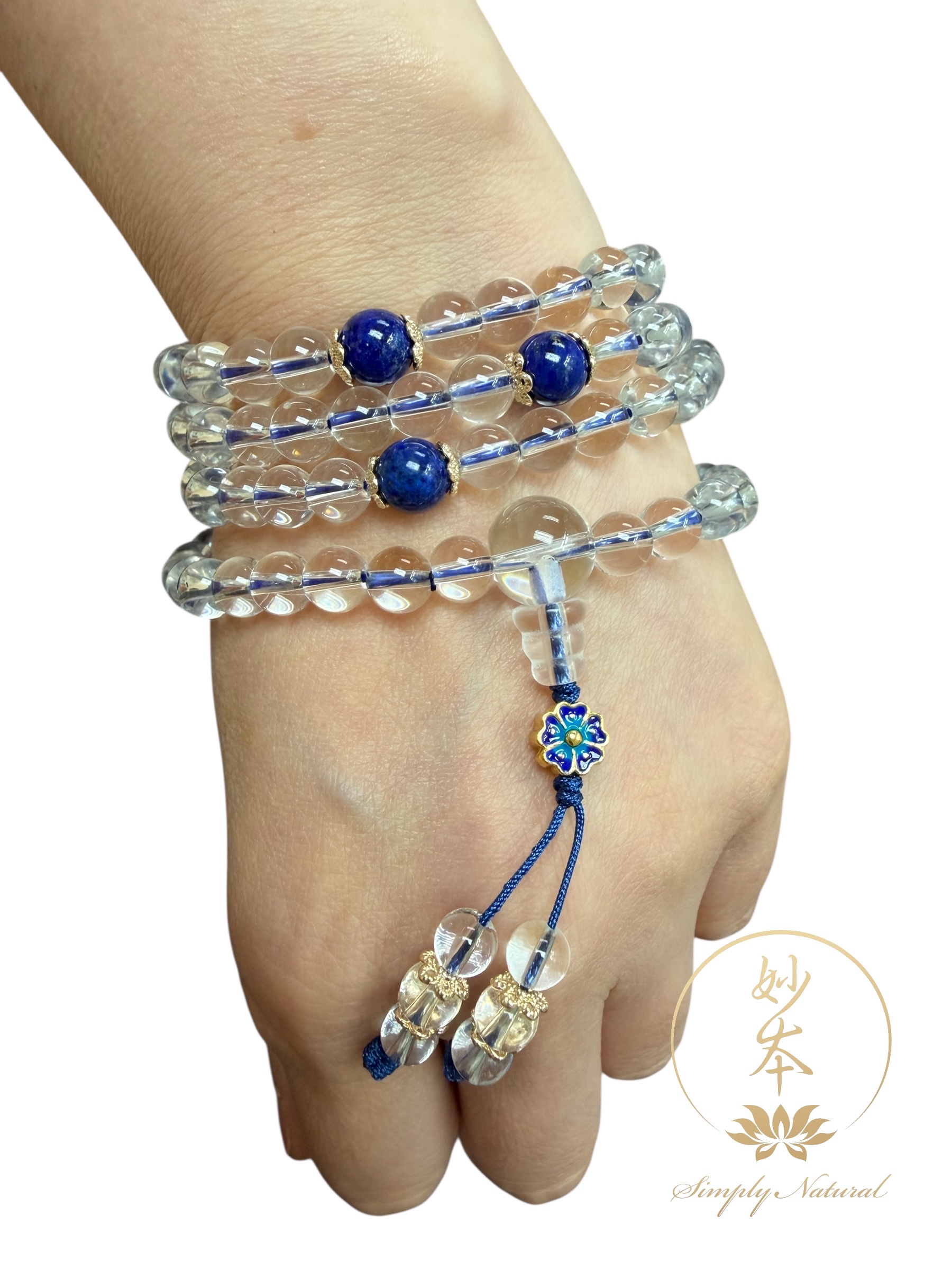 6mm 108粒印度白水晶念珠 配:青金石