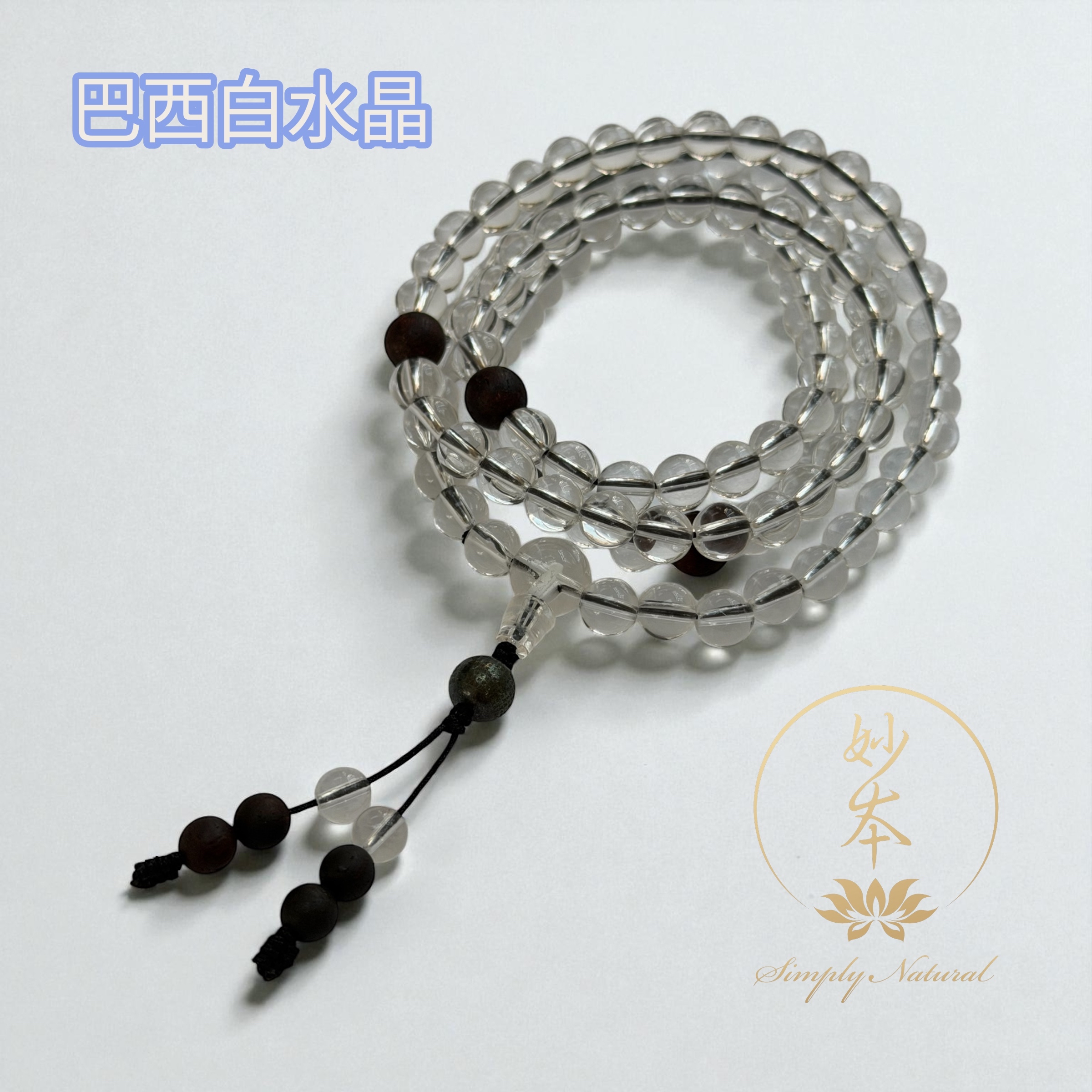 6mm 108粒巴西白水晶念珠 配:降真香、心經(手圍偏大)