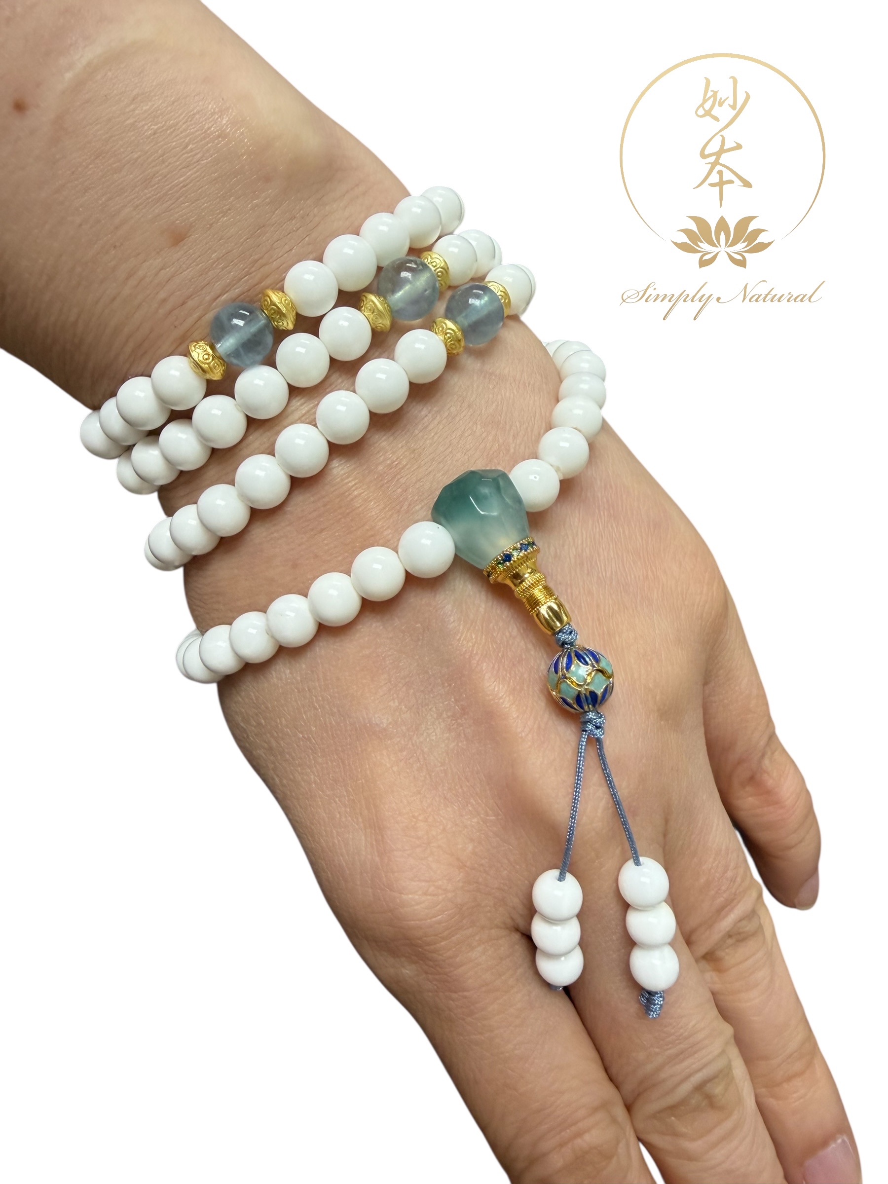 6mm 108粒硨磲念珠 :配:海藍寶