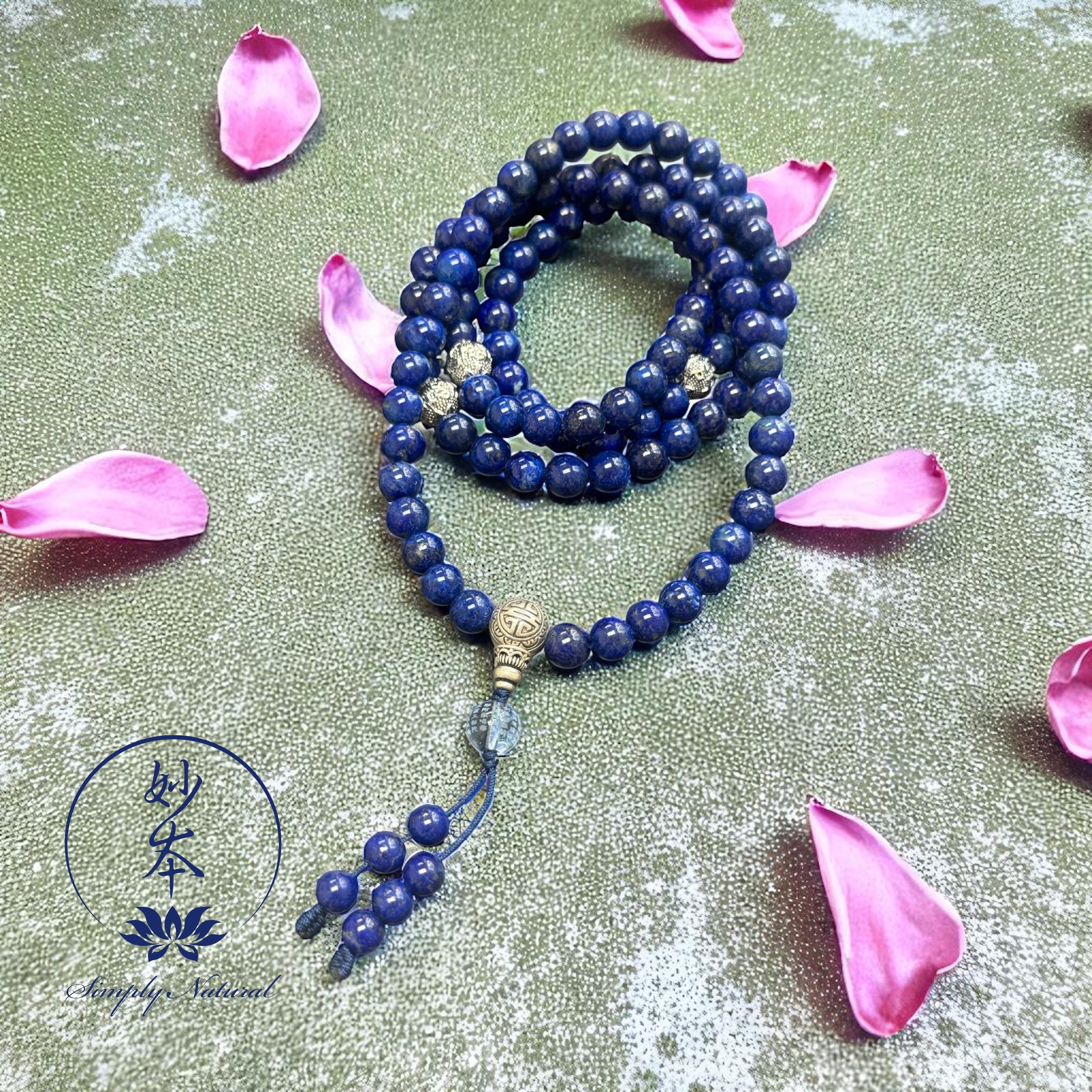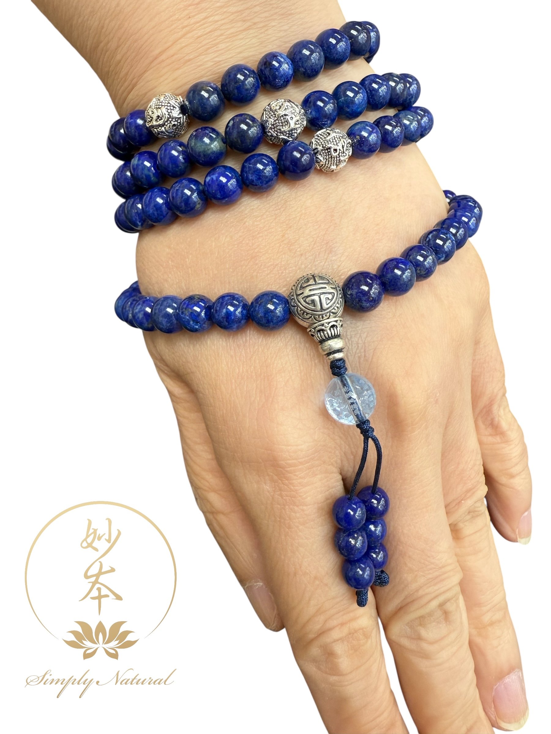 7.3mm 108粒青金石念珠 配:六字大明咒、藥師心咒(手圍偏大,合男士)