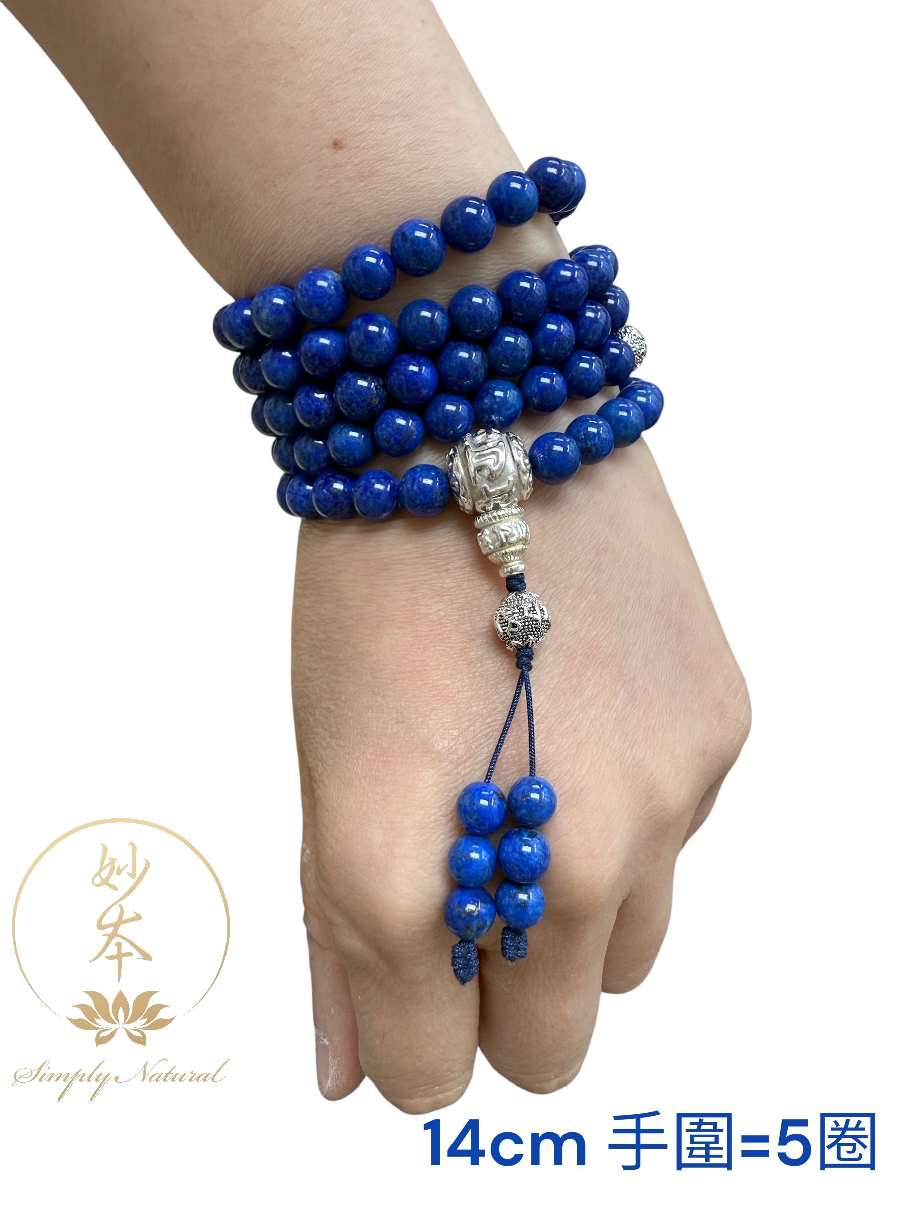 7.7mm 108粒青金石念珠 配:六字大明咒(圖14cm手圍,5圈)