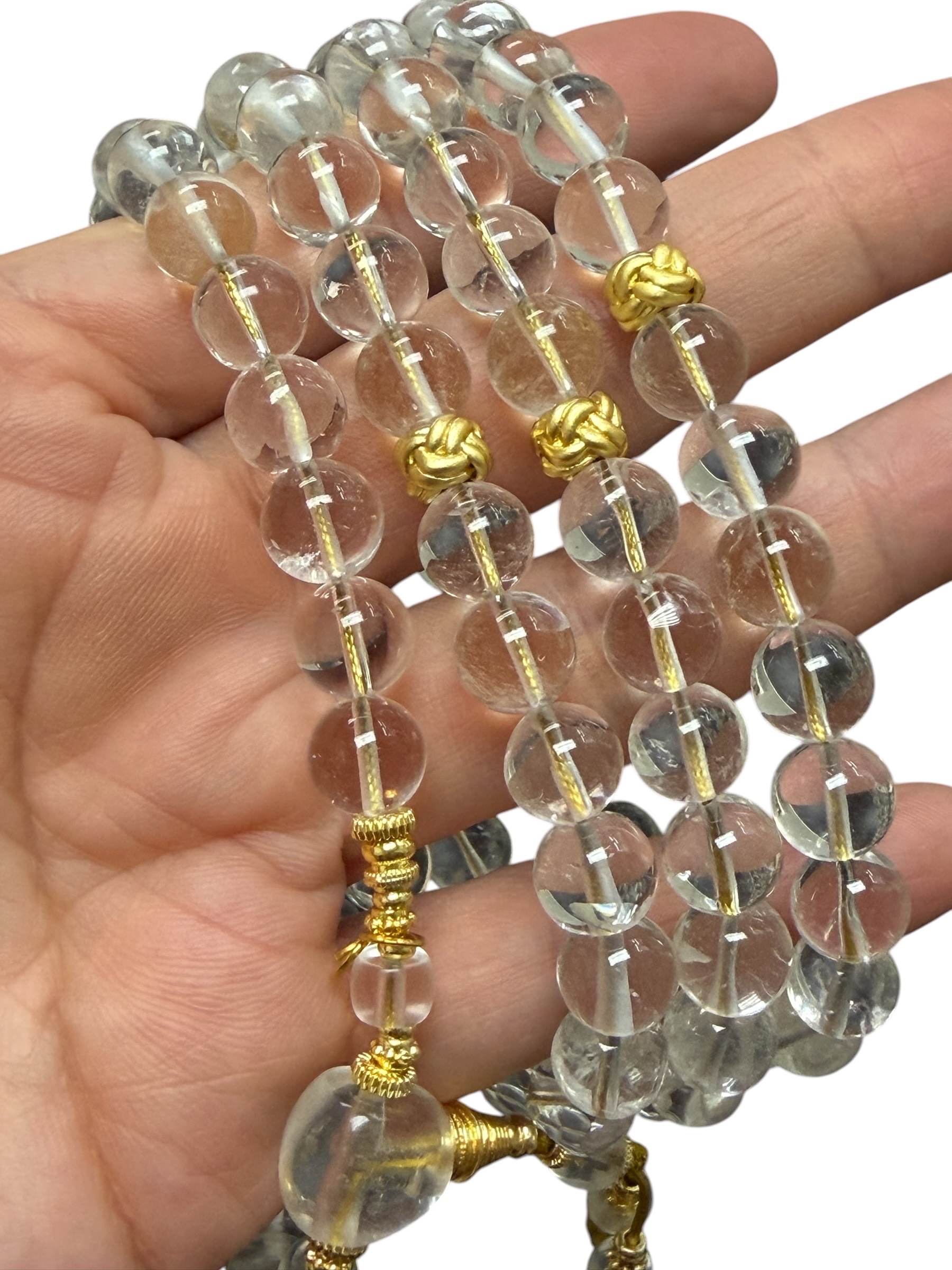 這款8mm喜馬拉雅天然白水晶念珠,絕對是喜愛水晶能量和靈性修行的朋友們不可錯過的選擇!採用天然白水晶製成,帶有天然綿,散發著純淨的光芒,讓人感到平靜與祥和。 這款念珠由108顆8mm的白水晶珠串聯而成,數量符合佛教傳統,方便您在冥想或誦經時計數。更特別的是,這款念珠還經過尼泊爾滿願塔的加持,讓它蘊含更強大的祝福力量,能幫助您心想事成,淨化身心靈。 別小看白水晶的力量喔!它被認為是「水晶之王」,擁有強大的淨化、平衡和放大能量的作用。配戴白水晶念珠,可以幫助您: * **淨化磁場:** 清除負能量,帶來正面思緒。 * **提升專注力:** 幫助您在冥想或工作時更加專注。 * **平衡能量:** 調和身心靈,達到內在的平衡與和諧。 * **放大能量:** 加強其他水晶或能量療法的效果。 這款念珠的繩子採用耐用的實繩,讓您可以安心配戴,不用擔心斷裂。無論是自用、送禮,都是一份充滿祝福與能量的好選擇。