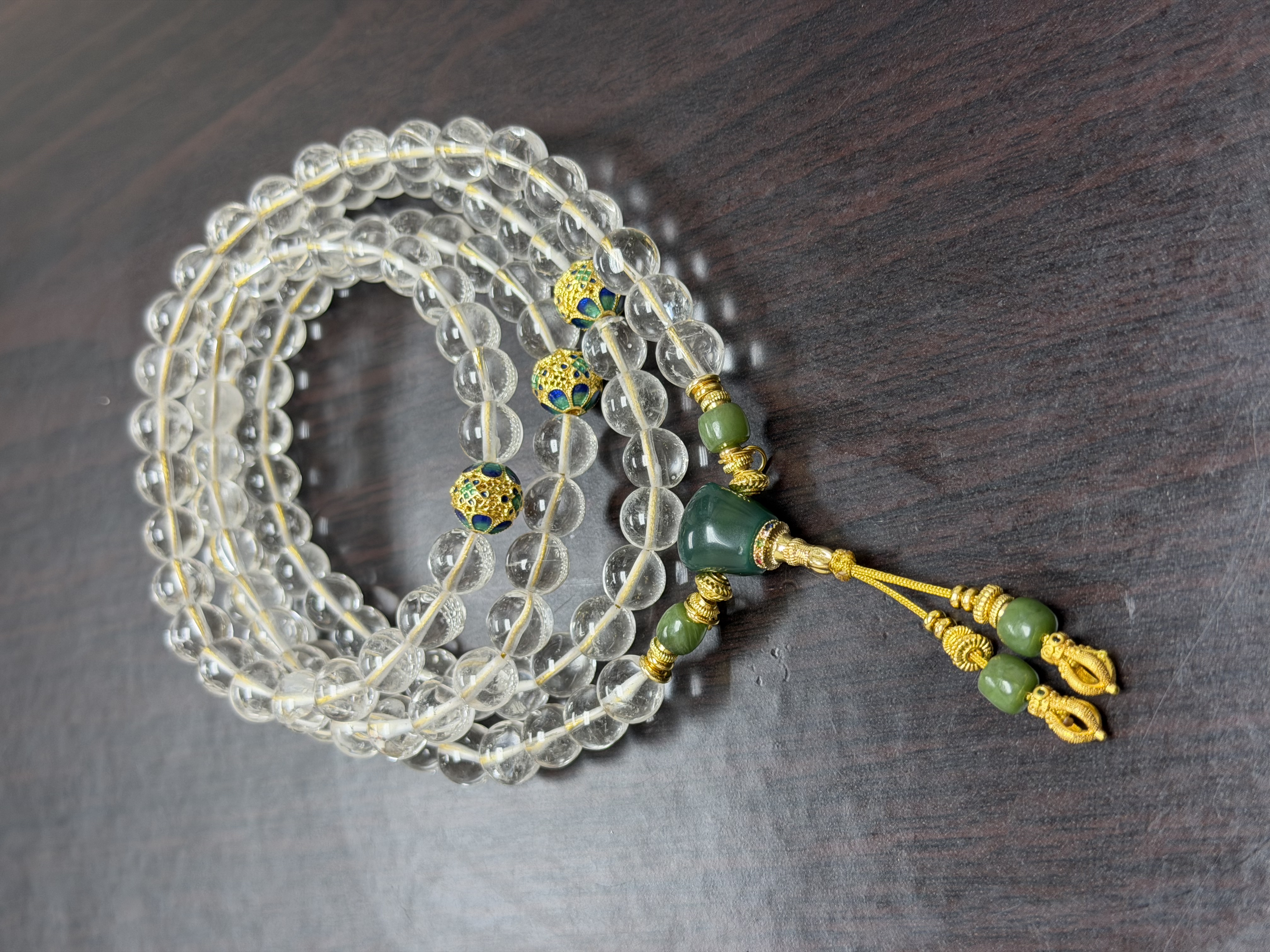 8mm 108粒喜馬拉雅天然白水晶 (實繩)#2尼泊爾滿願塔加持